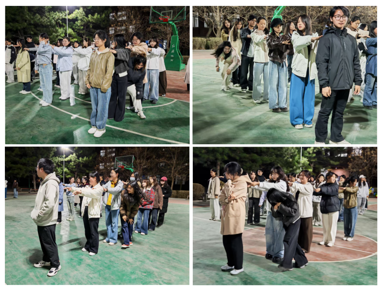 光芒散尽,眼前是一片幽深的森林。一只乌鸦掠过枝头,传来指引:搭肩列队,队尾之人依次蛇形奔至队首,直至走出森林。信任如电流传递在肩头。每一次接力,都让团结的绳索缠得更紧,森林里回荡着他们坚定而整齐的足音。