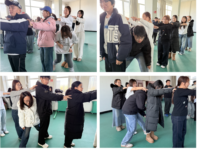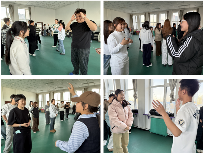 随着活动的激烈进行,同学们笑着凑在“乌龟与乌鸦”的圆阵里,当“乌龟与乌鸦”的故事响起,“乌鸦”二字成了触发键——左手急着去抓旁侧的食指,右手却要灵活躲闪,故事的节奏里,躲闪与抓取的互动,把陌生的距离越拉越近,活动室里呀盈满同学们的笑声。