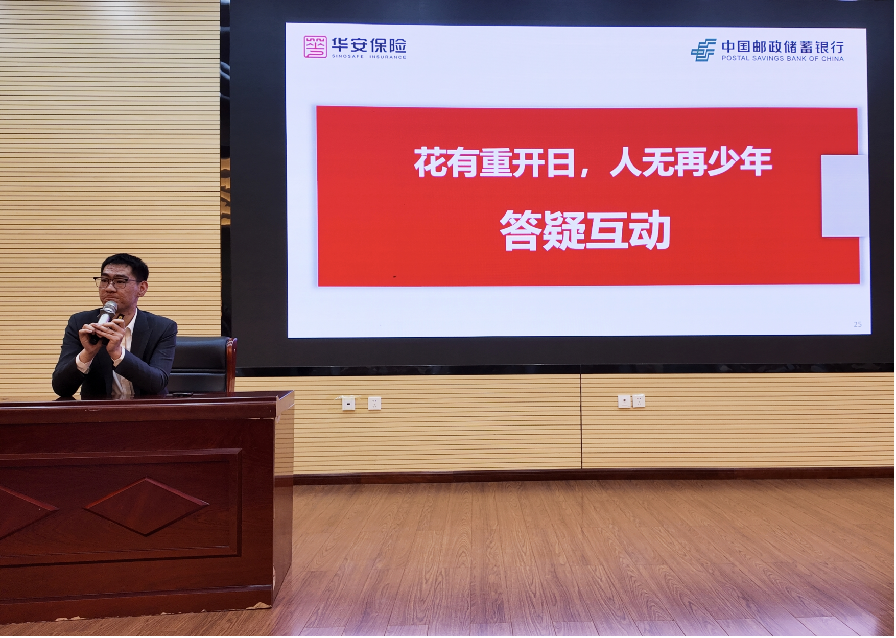 宣讲过程中,华安保险朱贺老师结合真实案例,以通俗易懂的方式剖析了大学生在日常生活中可能遇到的金融风险,如网络贷款陷阱、虚假理财诈骗、个人信息泄露等,并针对如何识别风险、保护个人信用记录等内容给出了实用建议。现场还设置了互动答疑环节,同学们踊跃提问,气氛热烈。