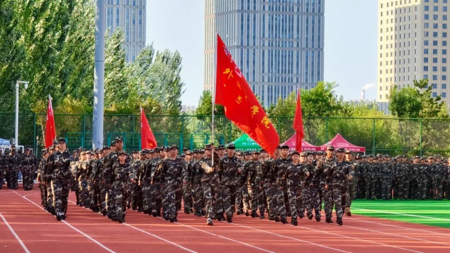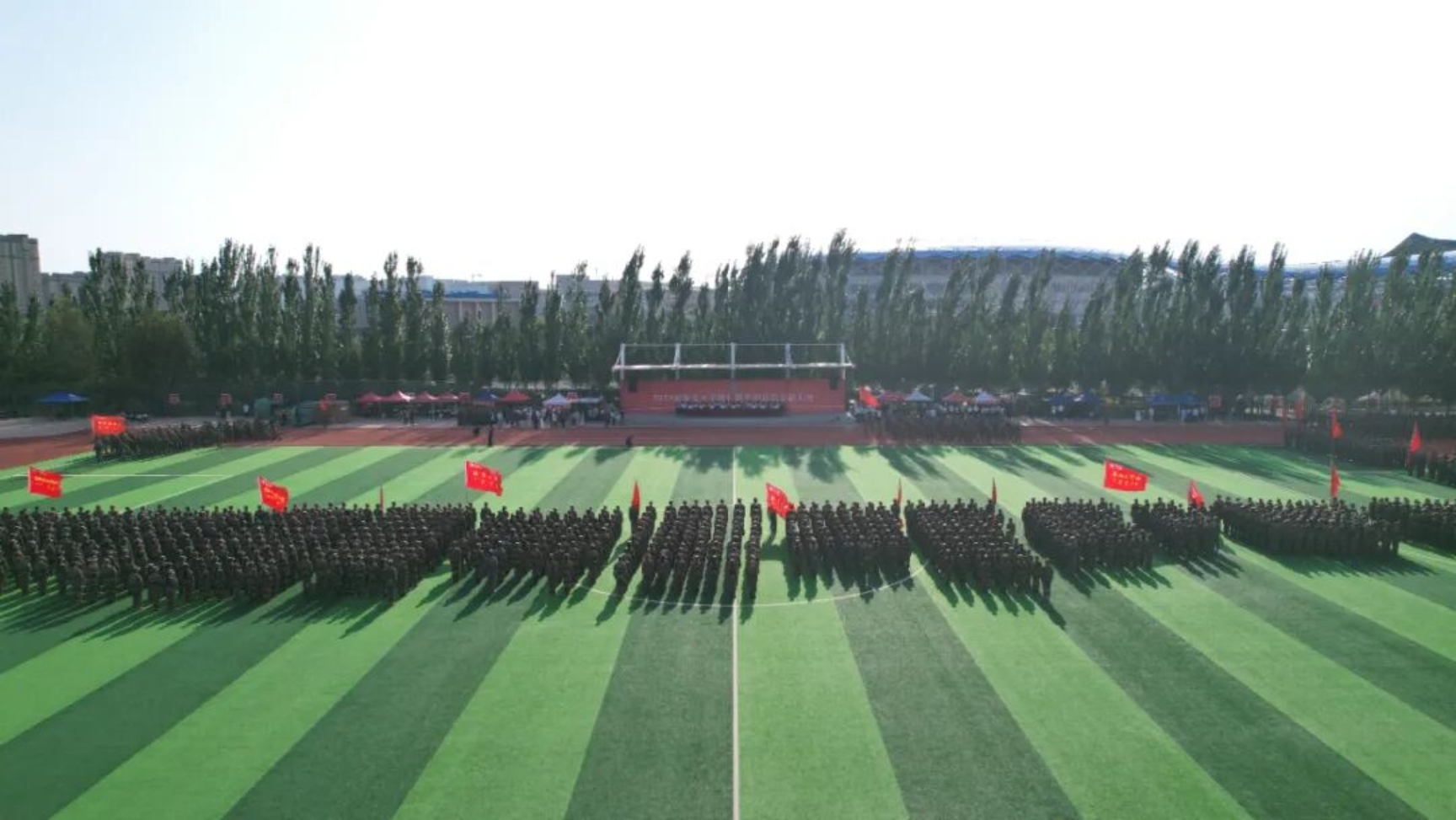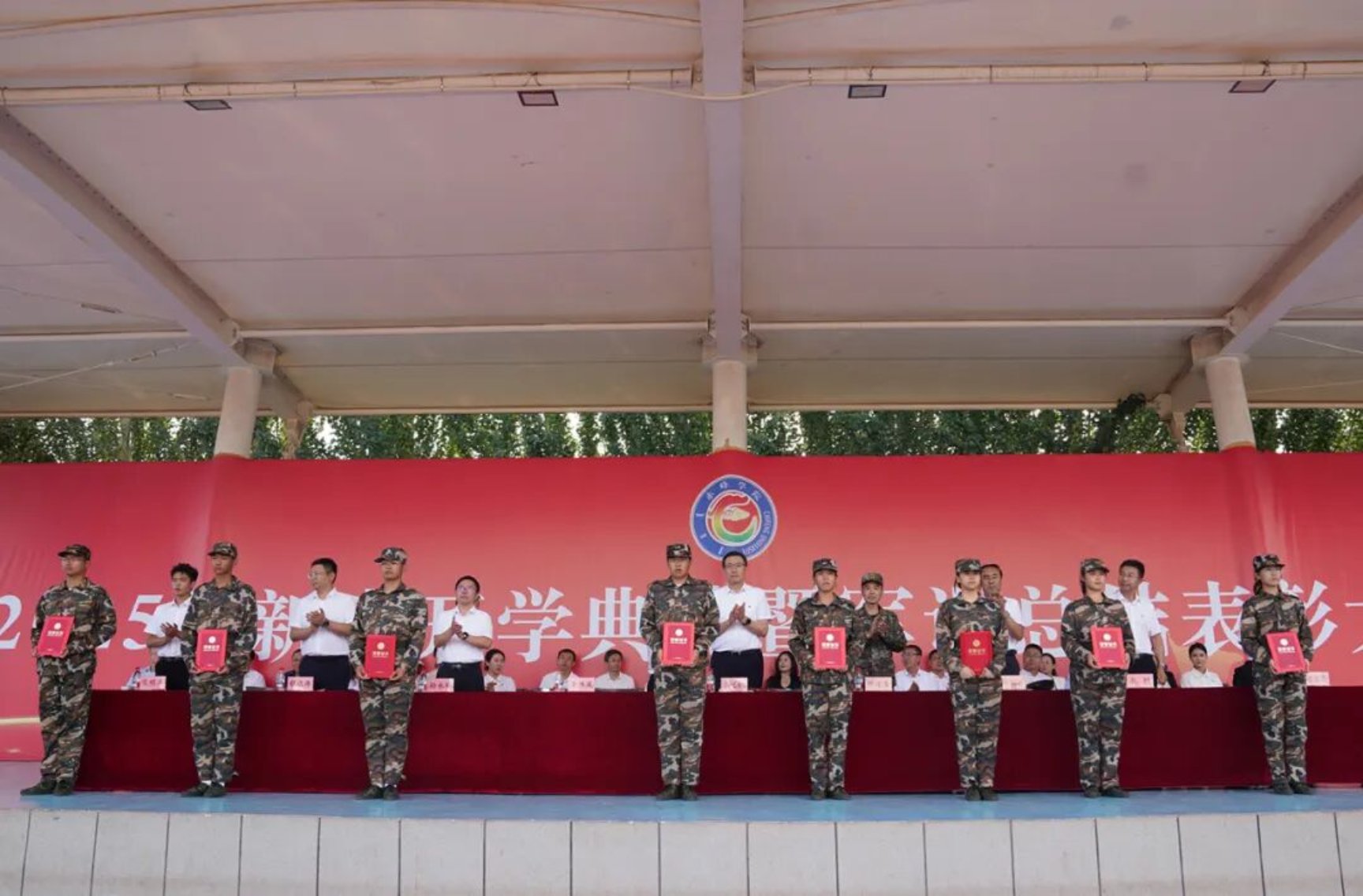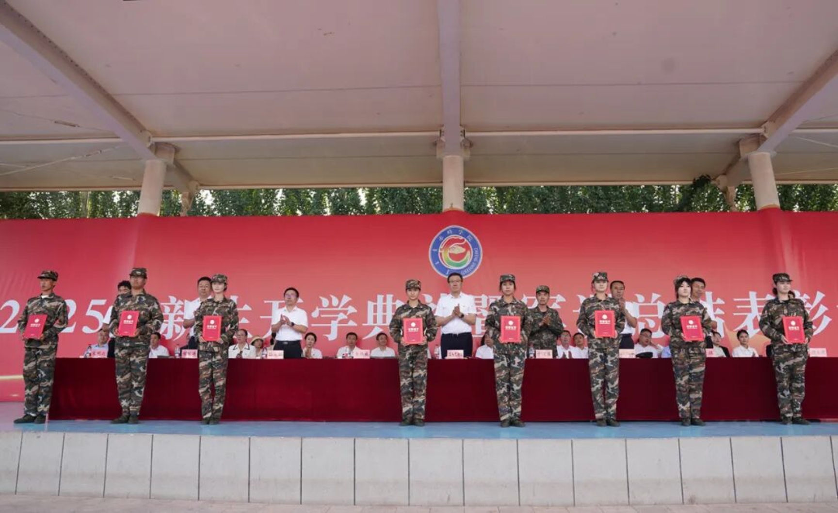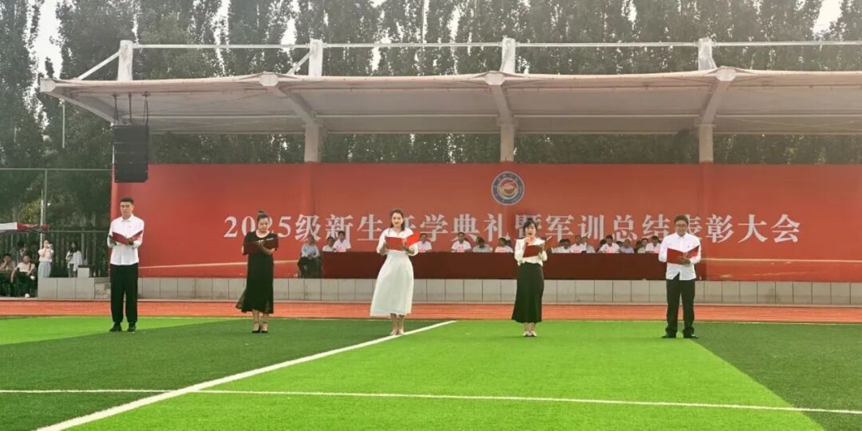 9月11日下午,我校在田径运动场召开2025级新生开学典礼暨军训总结表彰大会。