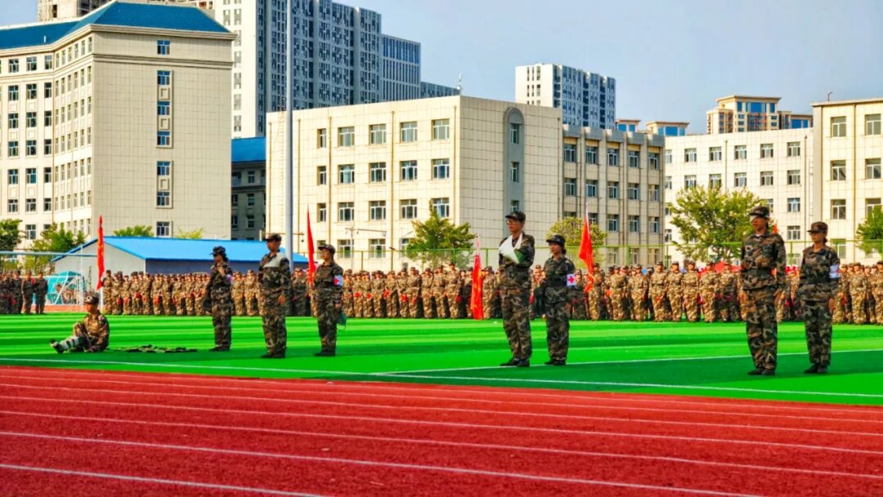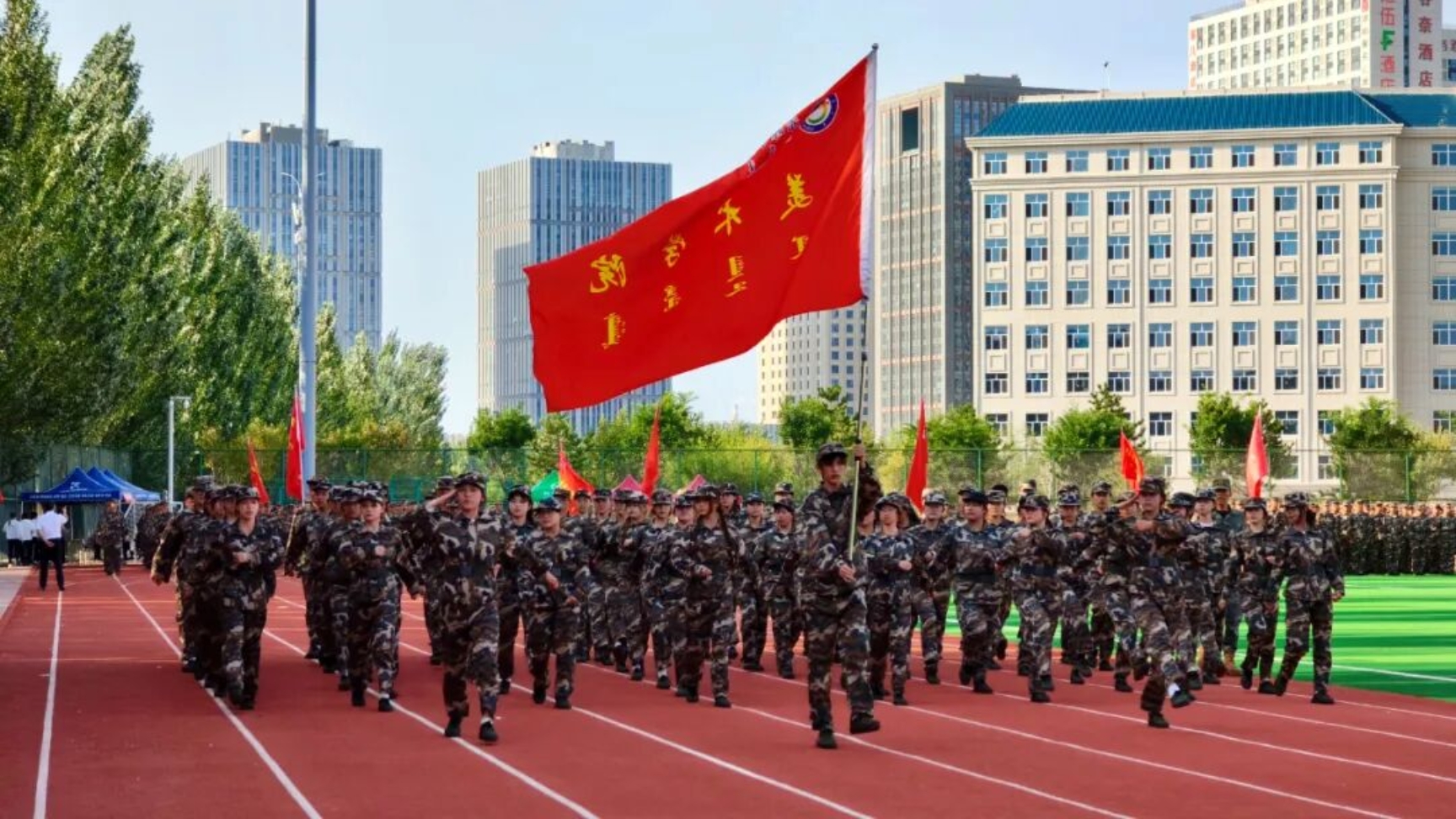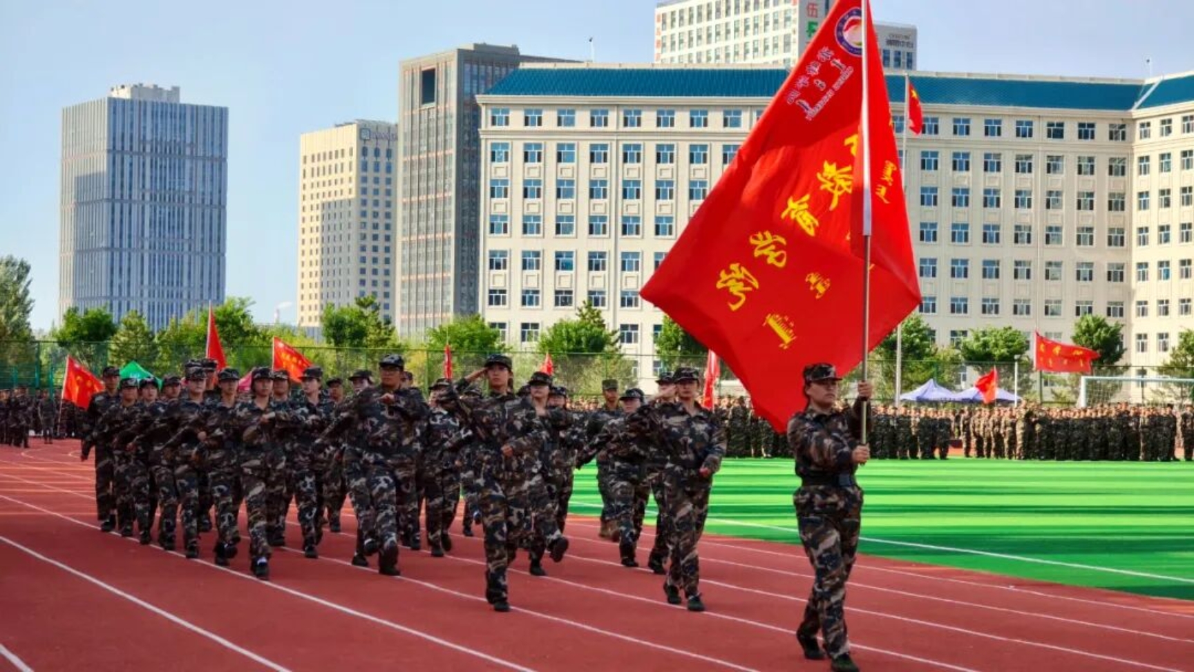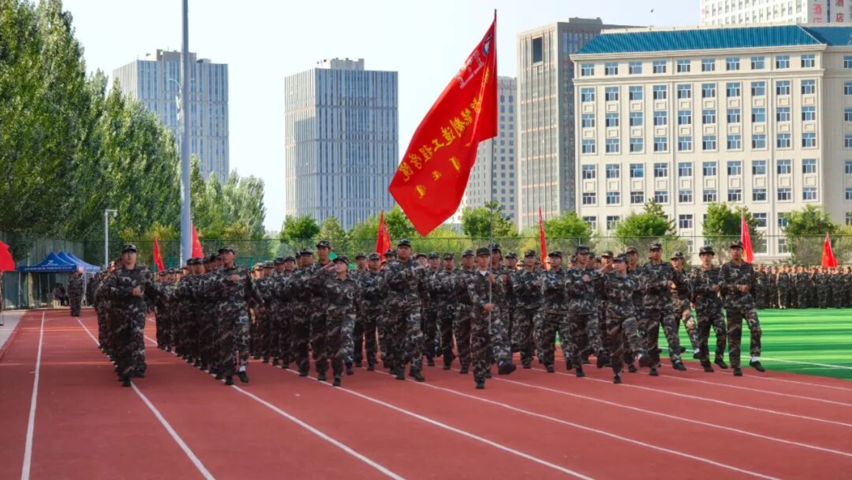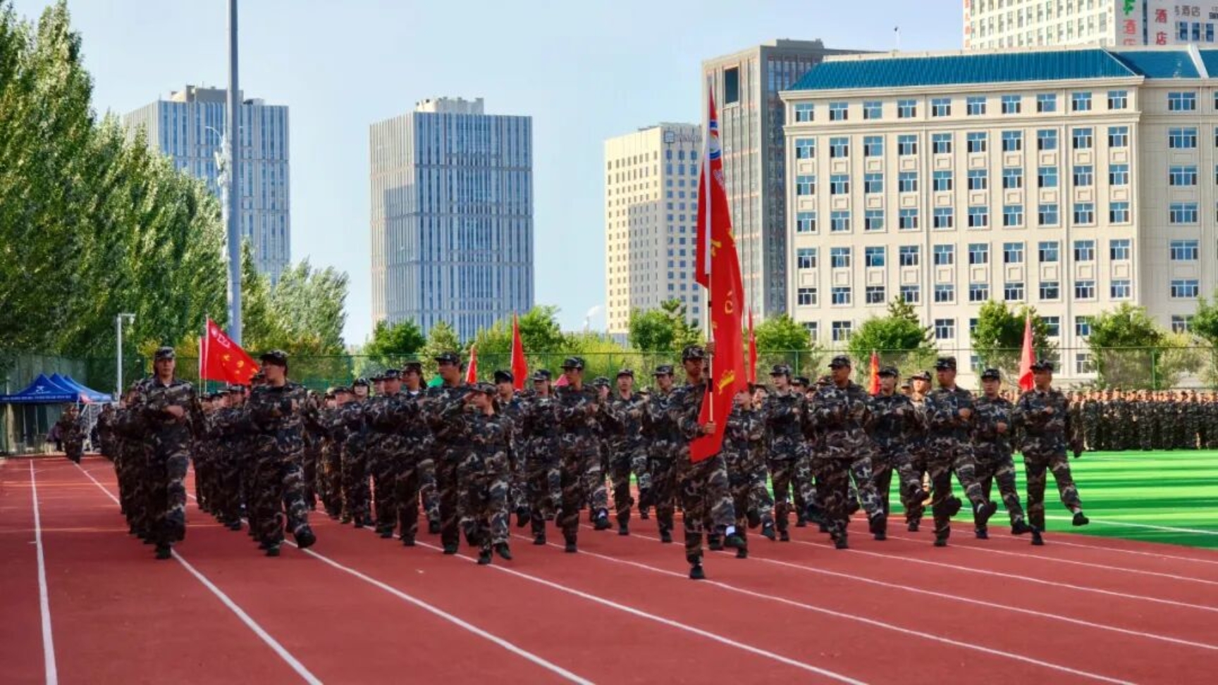 9月11日下午,我校在田径运动场召开2025级新生开学典礼暨军训总结表彰大会。