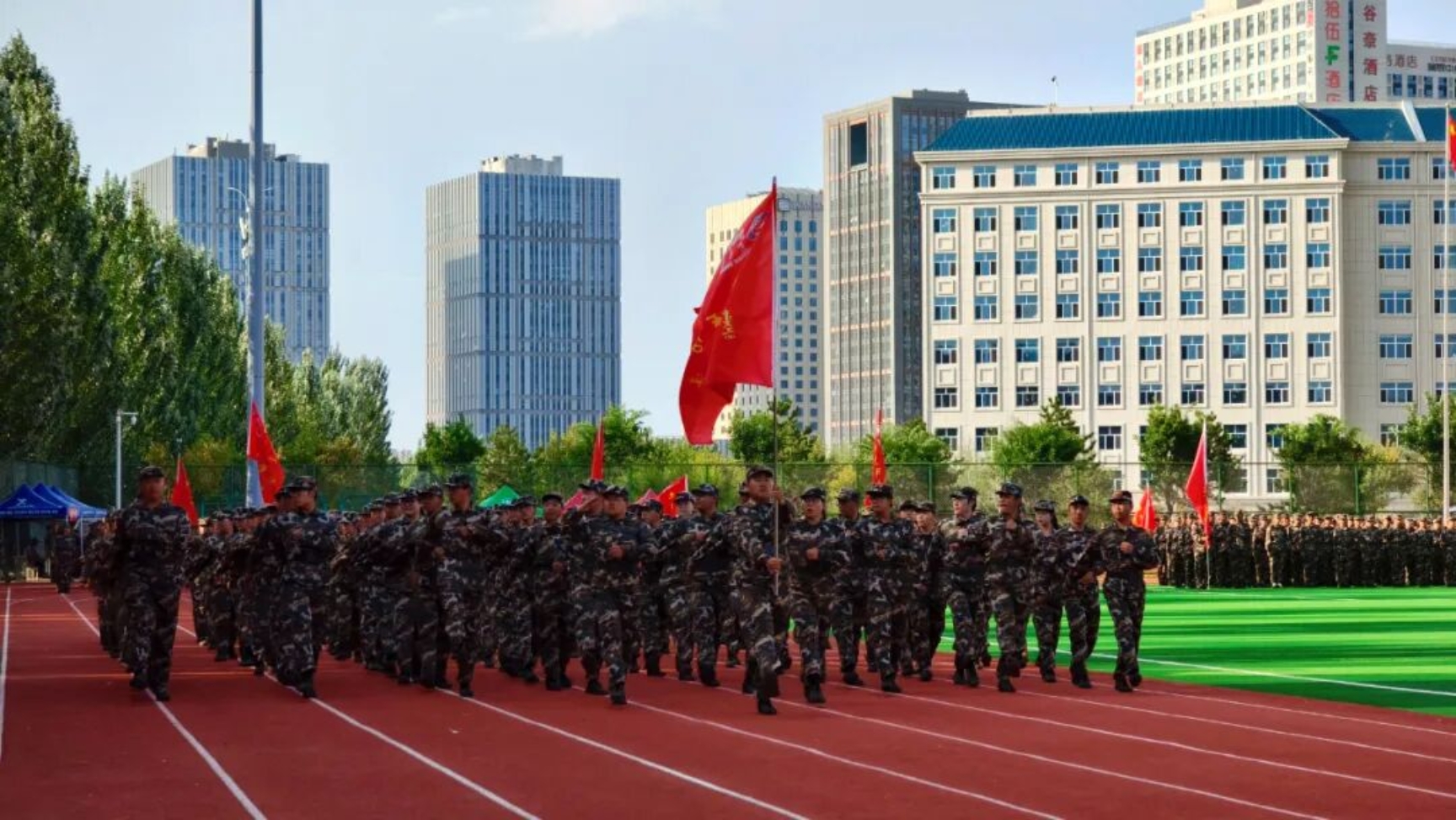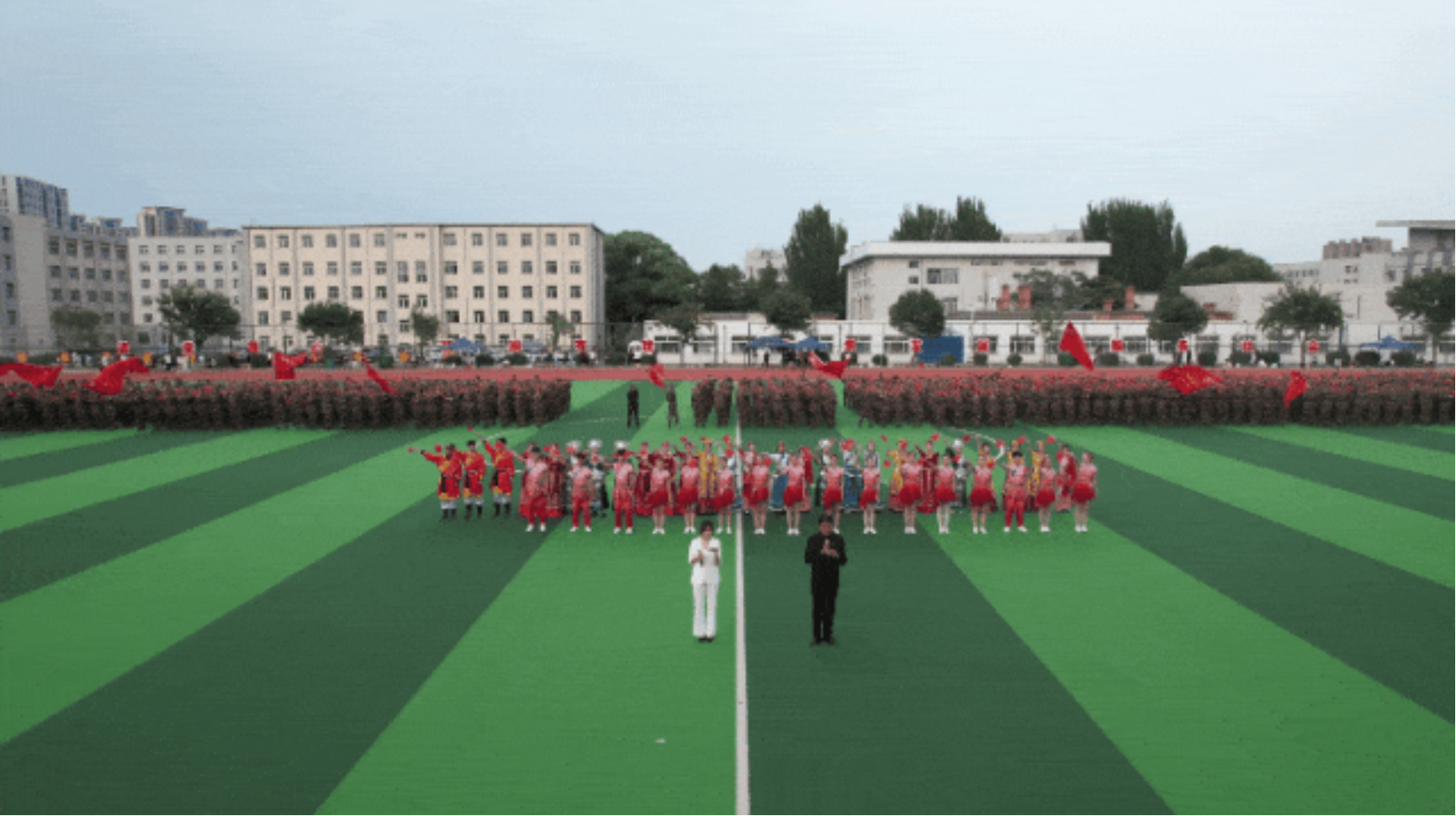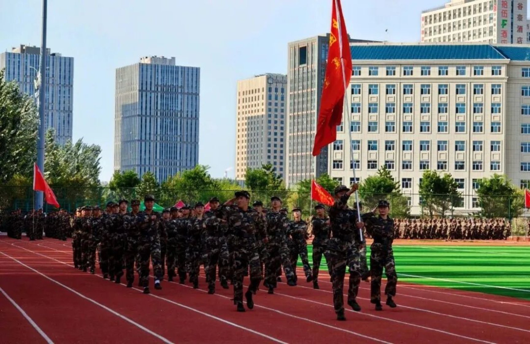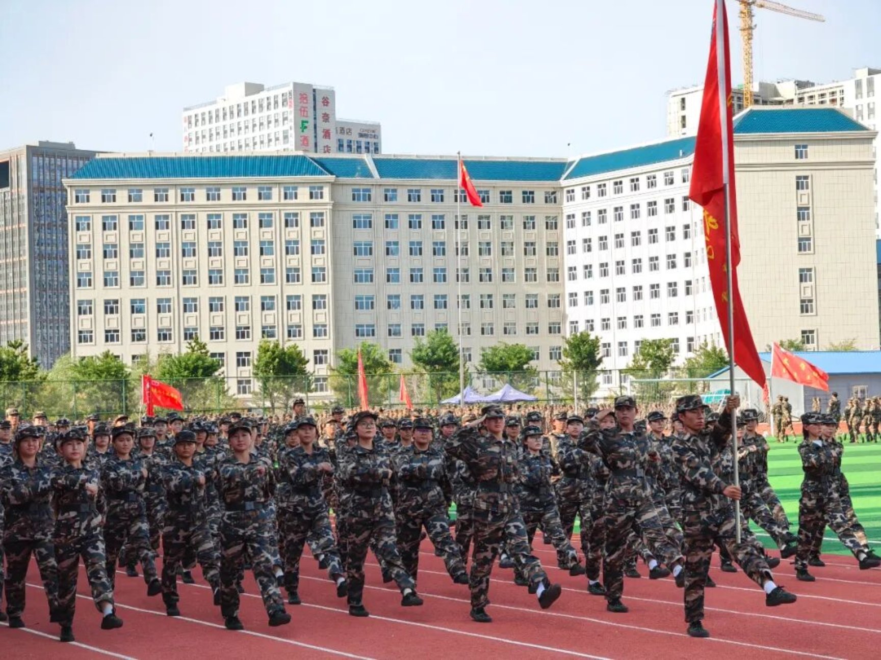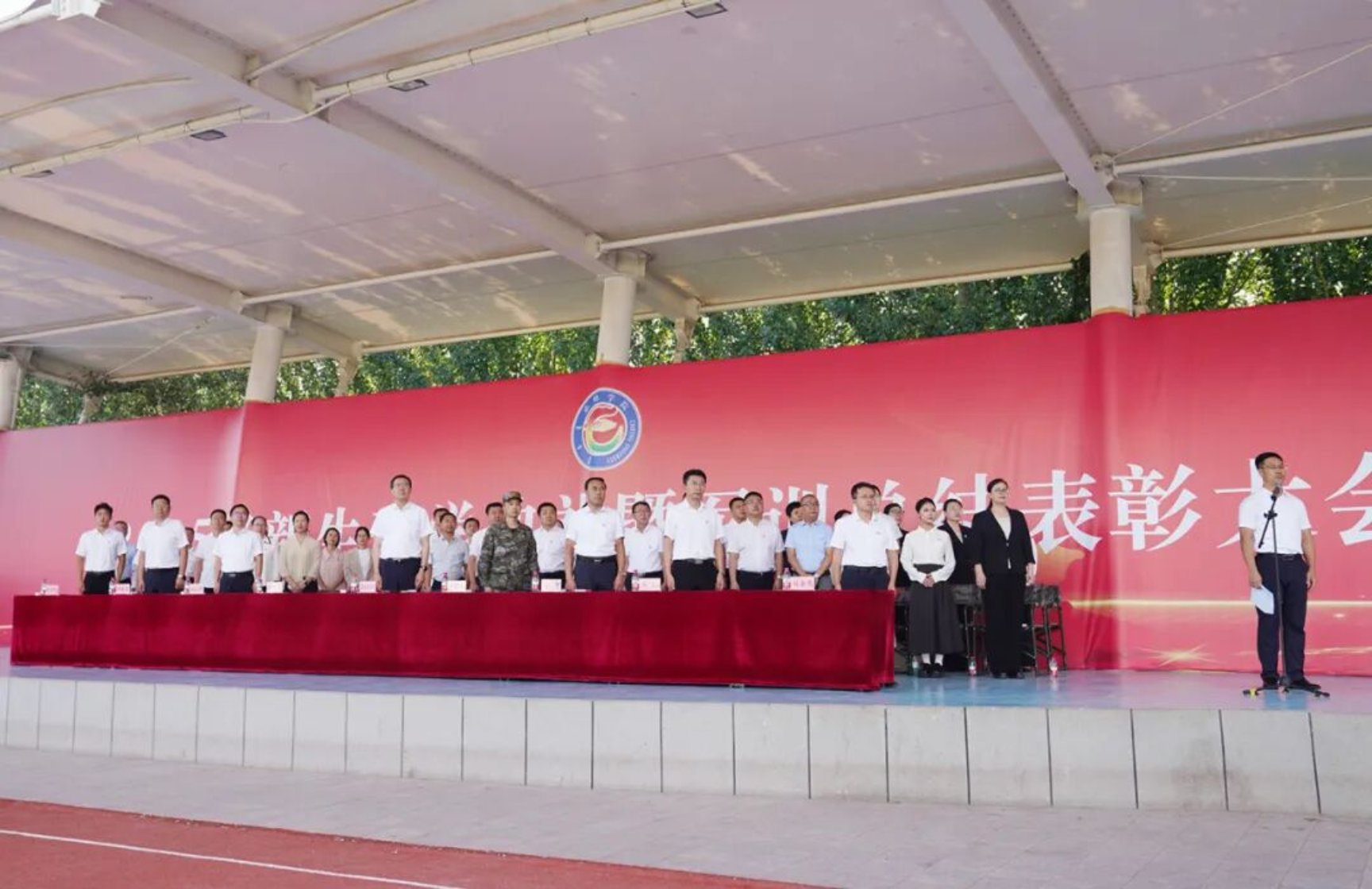 9月11日下午,我校在田径运动场召开2025级新生开学典礼暨军训总结表彰大会。