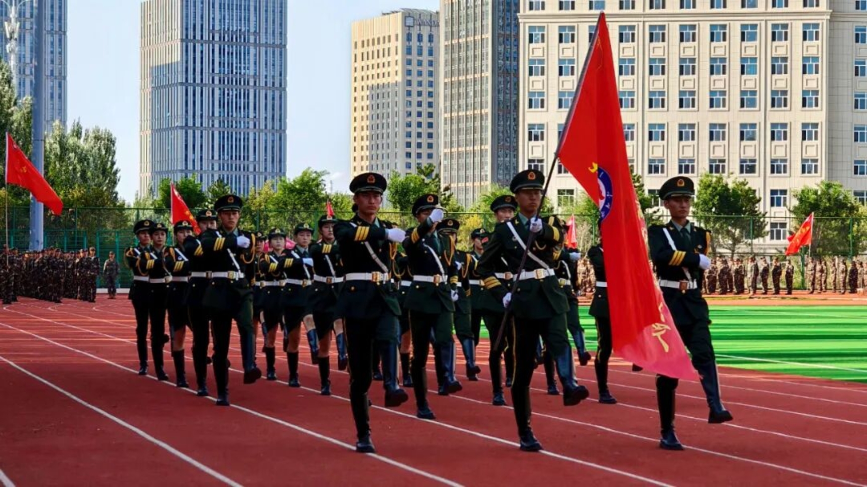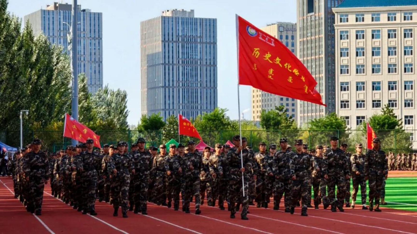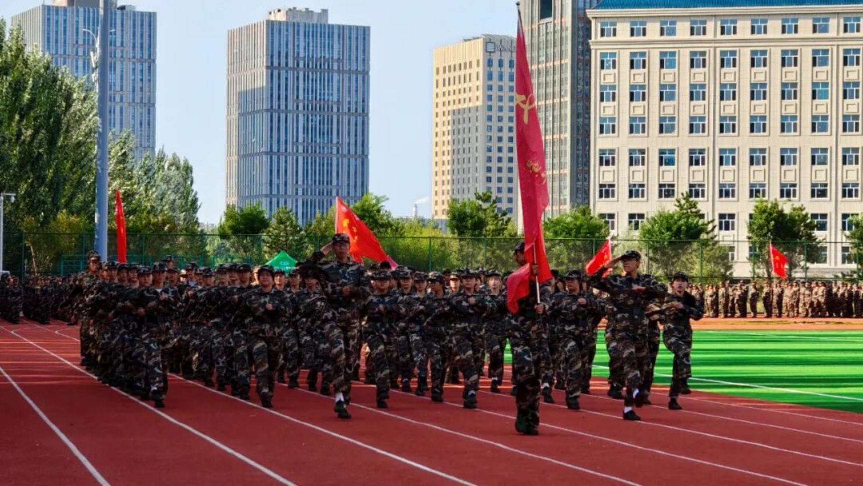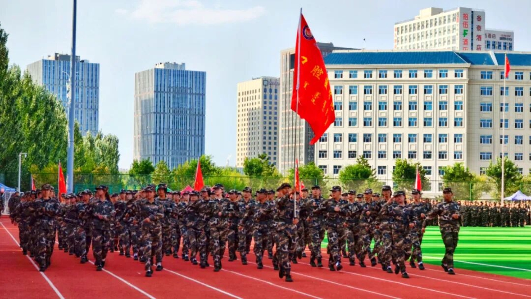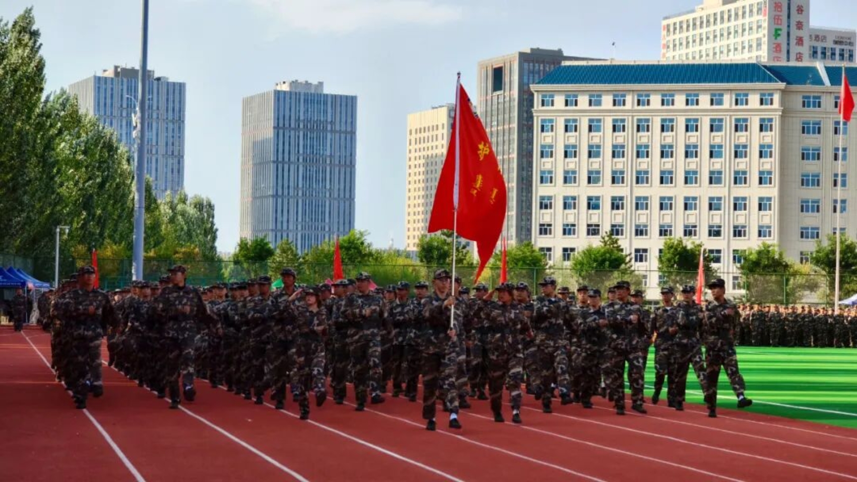 9月11日下午,我校在田径运动场召开2025级新生开学典礼暨军训总结表彰大会。