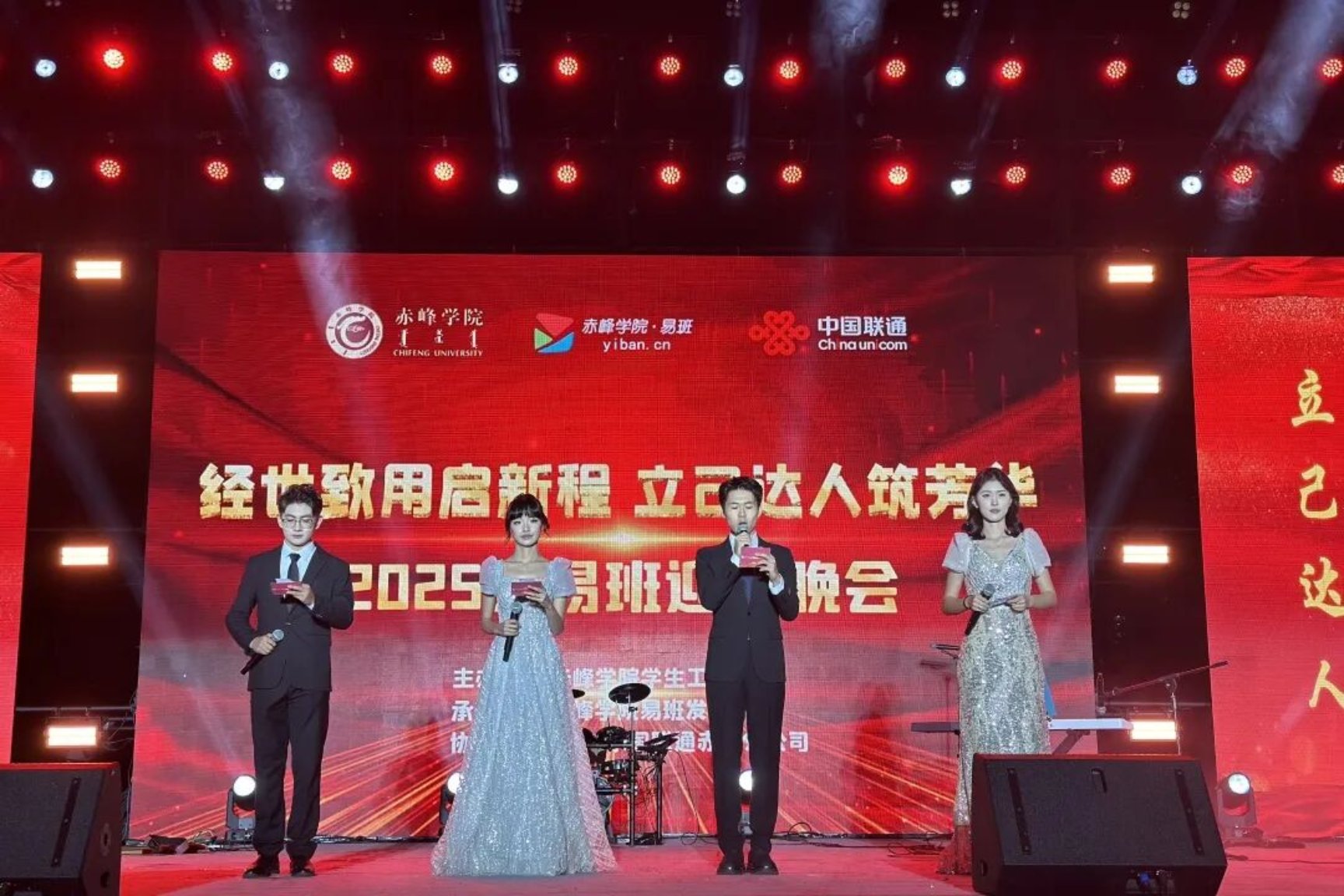 9月17日晚7时,赤峰学院2025年迎新晚会在田径运动场举行。校党委书记孟和巴特尔,党委副书记李伟威,党委委员、宣传部部长永胜,中国联通赤峰分公司总经理孙博瑛、副总经理吴延峰等出席并观看晚会。学校相关职能部门负责人,各二级学院党政负责同志、团学工作负责人、教师代表和2025级全体新生观看晚会。