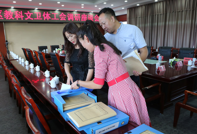 座谈结束后,傲木格副巡视员一行还现场查阅了我校工会工作材料。