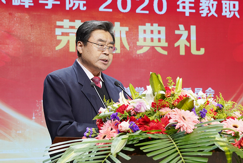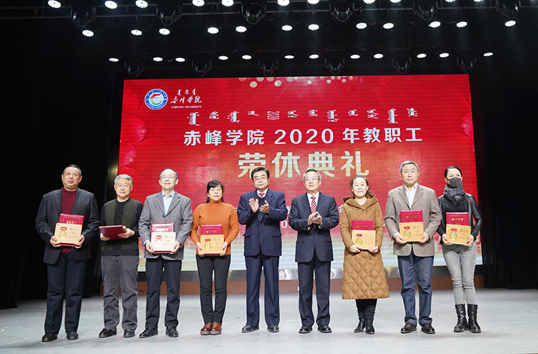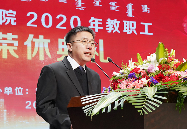 教职工荣休典礼在庄严的国歌声中开始。典礼上,党委委员、组织部部长徐晓明宣读了《2020年度赤峰学院教职工荣休名单》。今年,我校共有69位教职工从工作岗位上光荣退休。