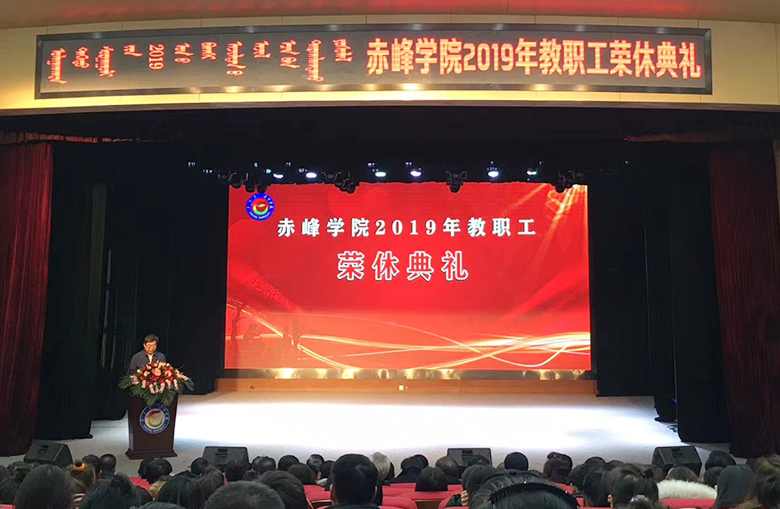 2019年12月30日下午,我校在大剧场隆重举行首届教职工荣休典礼。校党委书记王玉树,校长雷德荣,党委副书记于毅夫,副校长袁德忠、徐振军、布仁吉日嘎拉出席典礼。学校各职能部门负责人、各二级学院党政负责同志、各二级分工会主席、2019年度全体荣休教职工以及部分师生代表共400余人参加典礼,共同见证了这一难忘时刻。荣休典礼由徐振军副校长主持。