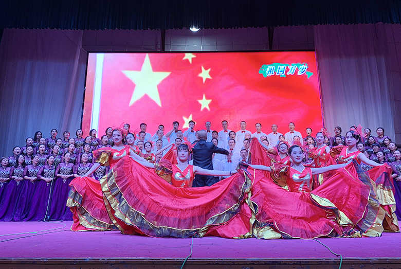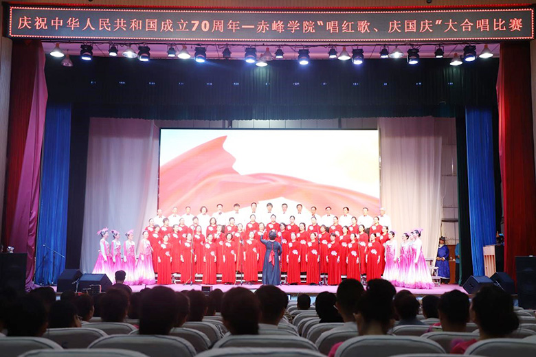 为庆祝中华人民共和国成立70周年,深入推进“不忘初心、牢记使命”主题教育,9月26日下午,我校在和雅楼多功能音乐厅举办“唱红歌、庆国庆”教职工大合唱比赛。18个分工会代表队的近千名教职工共同用美好歌声讴歌中国共产党领导中国人民走过的波澜壮阔的奋斗历程,歌颂伟大祖国改革发展取得的伟大成就,深情抒发了全体赤院人不忘初心、牢记使命的爱国情怀。校长雷德荣、党委副书记于毅夫、副校长袁德忠亲临现场,与师生代表一同观看了大合唱比赛。
