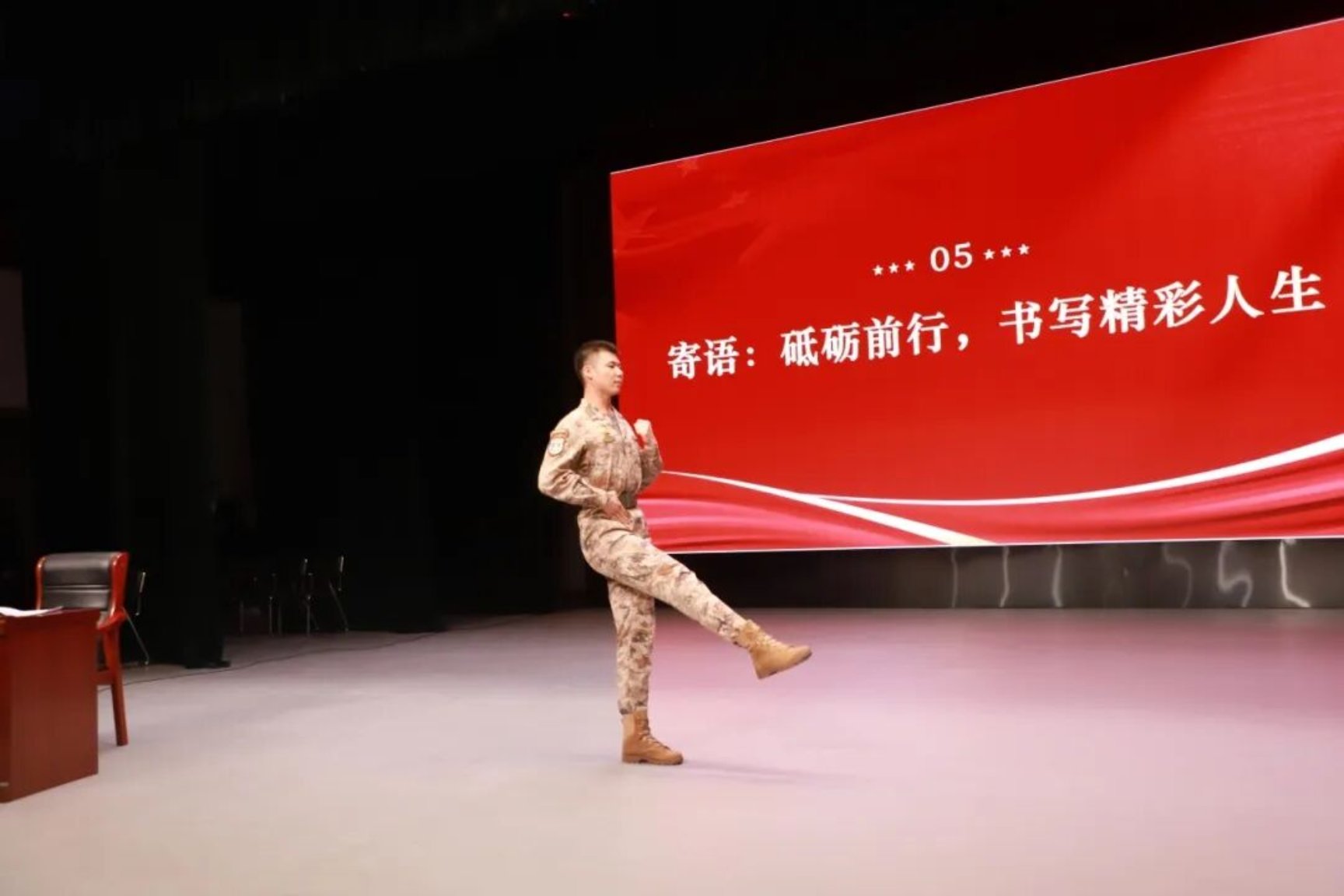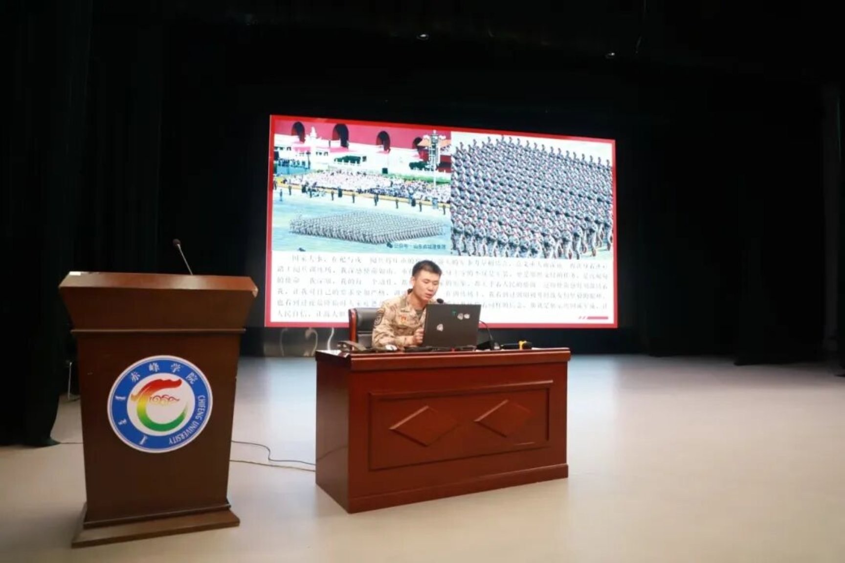 报告会邀请我校法学与商务学院2024级旅游管理专业的学生刘博睿为同学们宣讲,他以“致敬迷彩青春,担当时代使命”为题,从肩负家国重任的使命、艰苦坚守训练的责任、展现青春作为的担当和铭记成长力量的感恩之心四个方面深刻回顾自己参加纪念中国人民抗日战争暨世界反法西斯战争胜利80周年阅兵仪式的深刻经历。他寄语青年要在大学这片充满机遇的天地里勤奋学习、拓宽视野、提升能力、追逐梦想、展现才华。宣讲中,刘博睿向大家展示了阅兵正步步伐的雄姿英貌,在他铿锵有力的步伐中,青年看到的不仅是军威国威,更是人民军队的优良作风与昂扬的战斗意志。