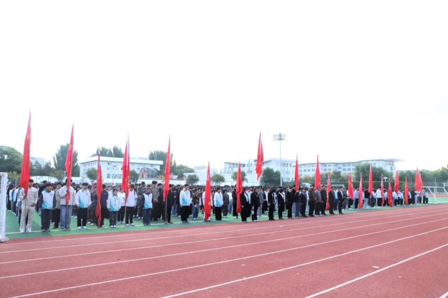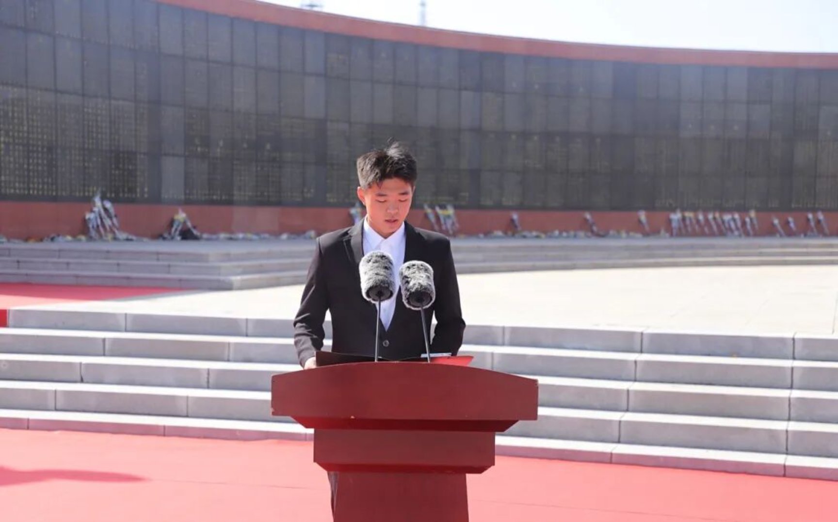 “请全体师生怀着无尽的哀思、深切缅怀,向为民族独立、人民解放、国家富强、人民幸福英勇献身的革命先烈,默哀一分钟。”在主持人的倡议下,师生们低头静立,以最庄重的方式追思先烈,操场上唯有秋风轻拂,诉说着对英烈的无尽怀念。