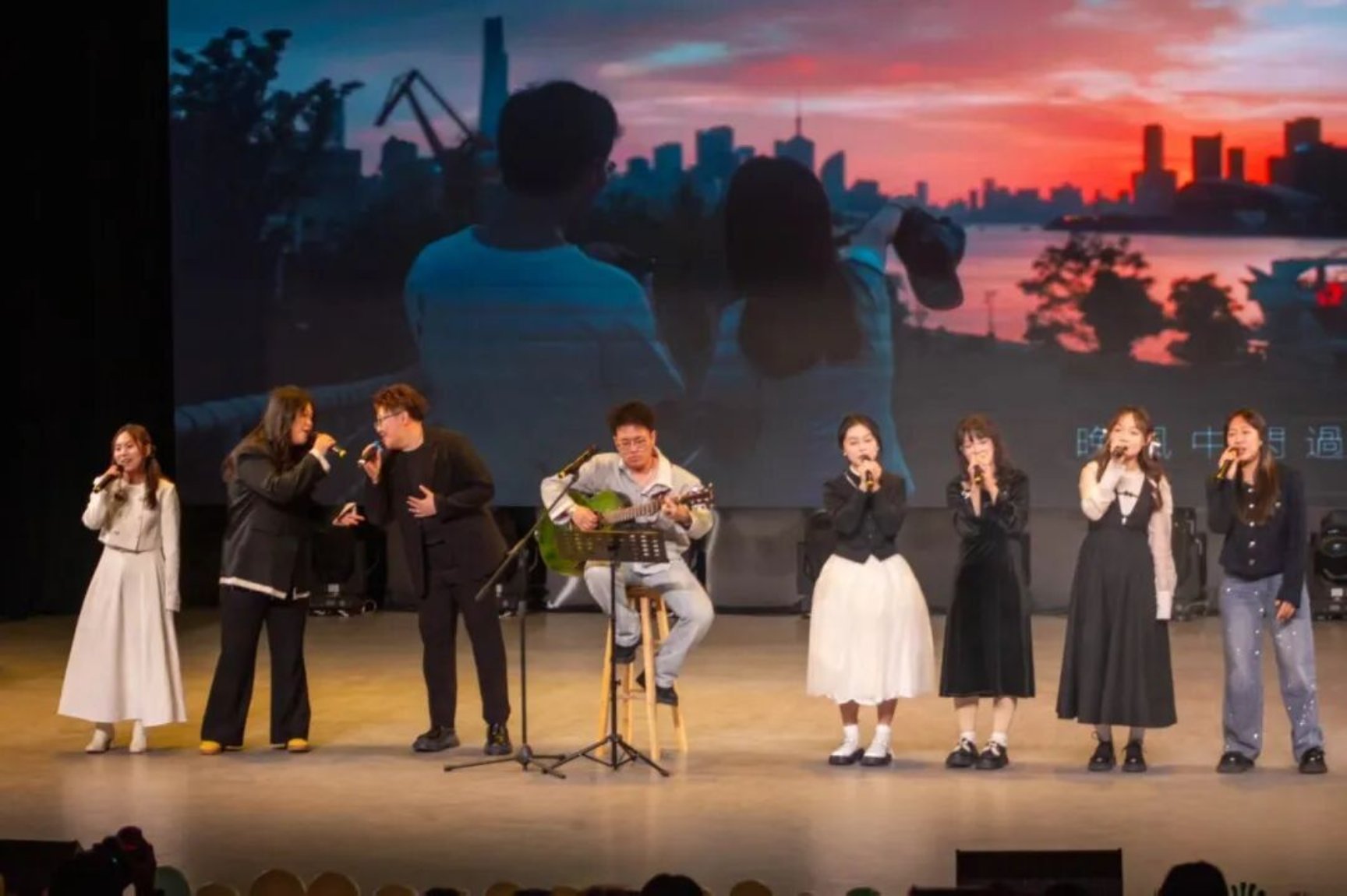 在本次闭幕式的文艺演出中,ACG动漫社团、松州汉服社、火舞社、武术社团、焰火文化社团、吉他社等多个社团为现场师生带来了动漫舞蹈、汉服走秀、武术表演、摇滚串烧等类型多样的精彩演出。演出的最后,主持人公布了2025年度获评“星级社团”“优秀社团指导教师”“优秀社团负责人”等项目的社团和个人名单。