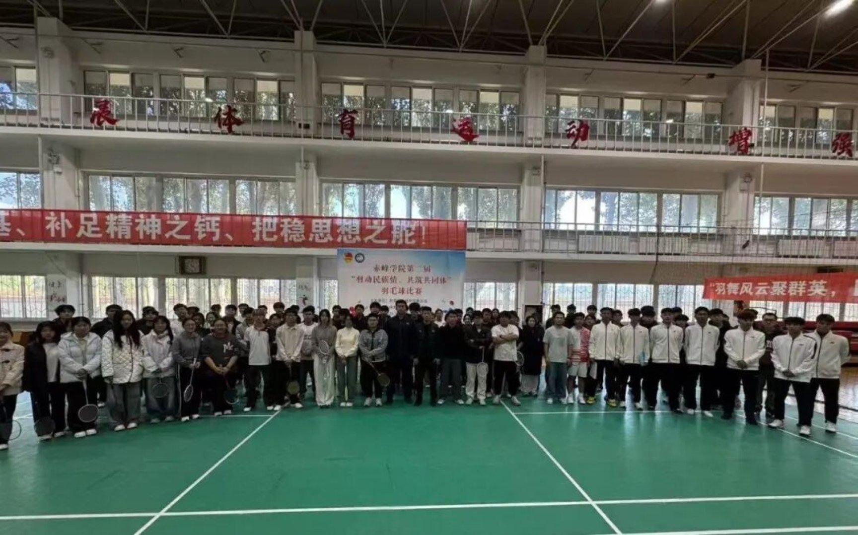 为深入贯彻落实《内蒙古自治区促进大学生体质强健十条措施》和学校出台的《赤峰学院大学生体质健康水平提升方案》,推进达成学校关于提升学生体质健康水平的重点工作要求,校团委联合体育学院,组织学校羽毛球社团于2025年11月19日在综合体育馆举办了第二届“羽动民族情 共筑共同体”羽毛球比赛。共有来自不同年级和专业的百余名选手和观众参与了本次比赛。