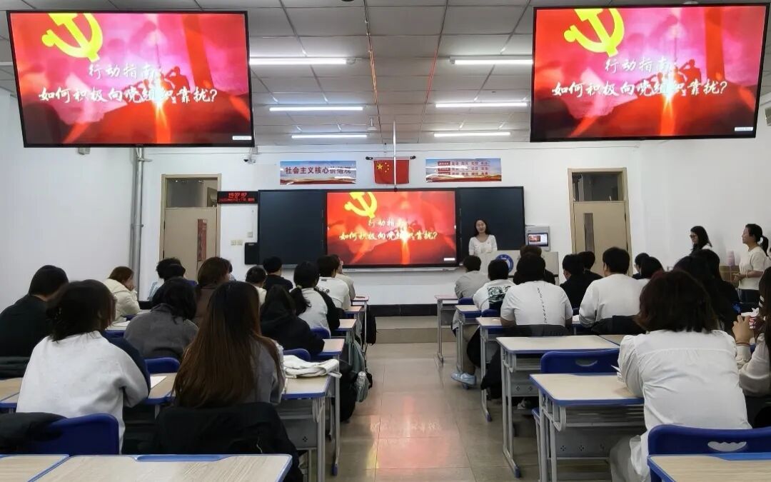 本次党课立足新时代发展背景,深度融合口腔医学专业特色,从时代召唤、青春答卷、光荣集结、行动指南、何以强己五个维度层层展开。高楠老师结合数字化诊疗等口腔医学前沿技术,阐释专业发展与时代的紧密关联,强调青年学子要坚定信念、练就过硬本领、践行医者初心。在“光荣集结”环节,“青马”班刘居正等4名同学依次登台,结合专业实际阐释向党组织靠拢的意义。课上还邀请党员代表李平平等3名同学现场分享入党历程与成长经验,用真实故事引导青年学子端正入党动机、坚定信仰追求,在学思践悟中不断向党组织靠拢。