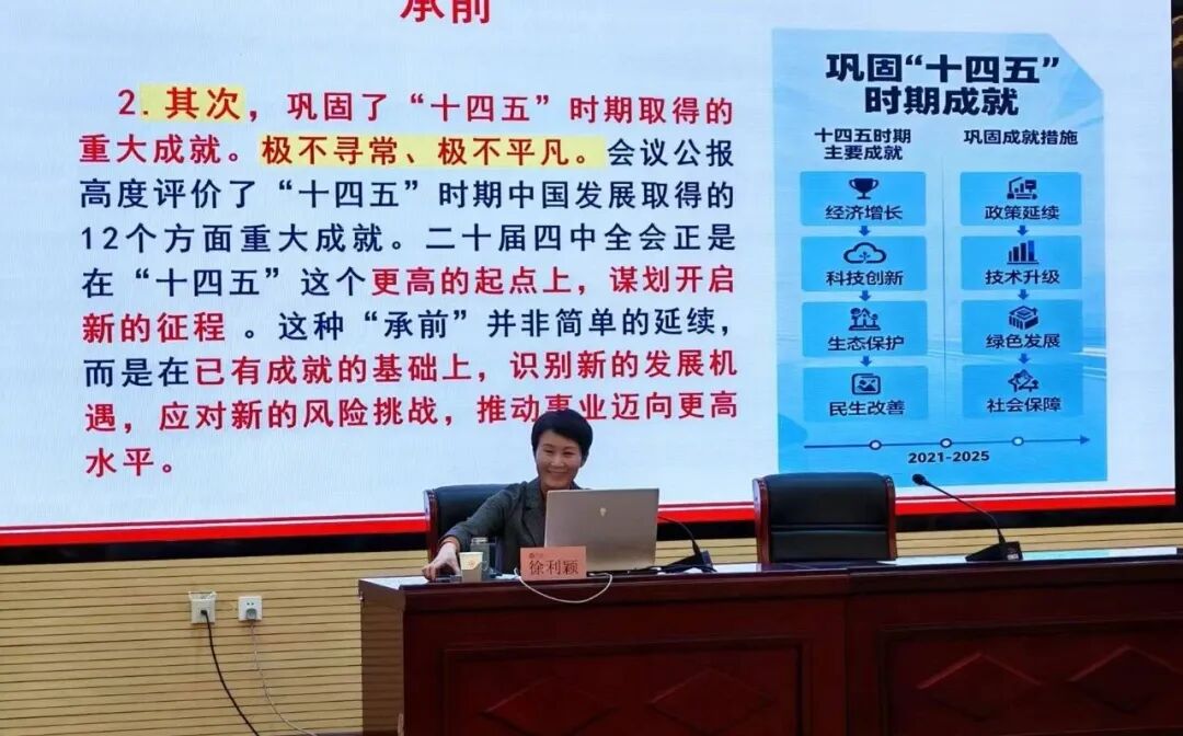 讲座中,徐利颖院长从“党的二十届四中全会是在即将进入基本实现社会主义现代化夯实基础、全面发力的关键时期召开的一次十分重要的会议”“深入学习领会党的二十届四中全会精神”“全面贯彻全会精神,书写中国式现代化内蒙古新篇章”“落实全会精神,推动中国式现代化赤峰建设”四个方面展开深入解读。通过列举我国在科技创新、乡村振兴、生态文明建设等领域的实践成果,直观展现了新时代推进中国式现代化的坚实步伐。徐利颖院长特别强调,高校青年作为未来建设的生力军,要将个人成长与国家发展紧密结合,在专业学习中夯实知识基础,在社会实践中锤炼过硬本领,以“功成不必在我,功成必定有我”的担当,为开创中国式现代化新局面贡献青春力量。