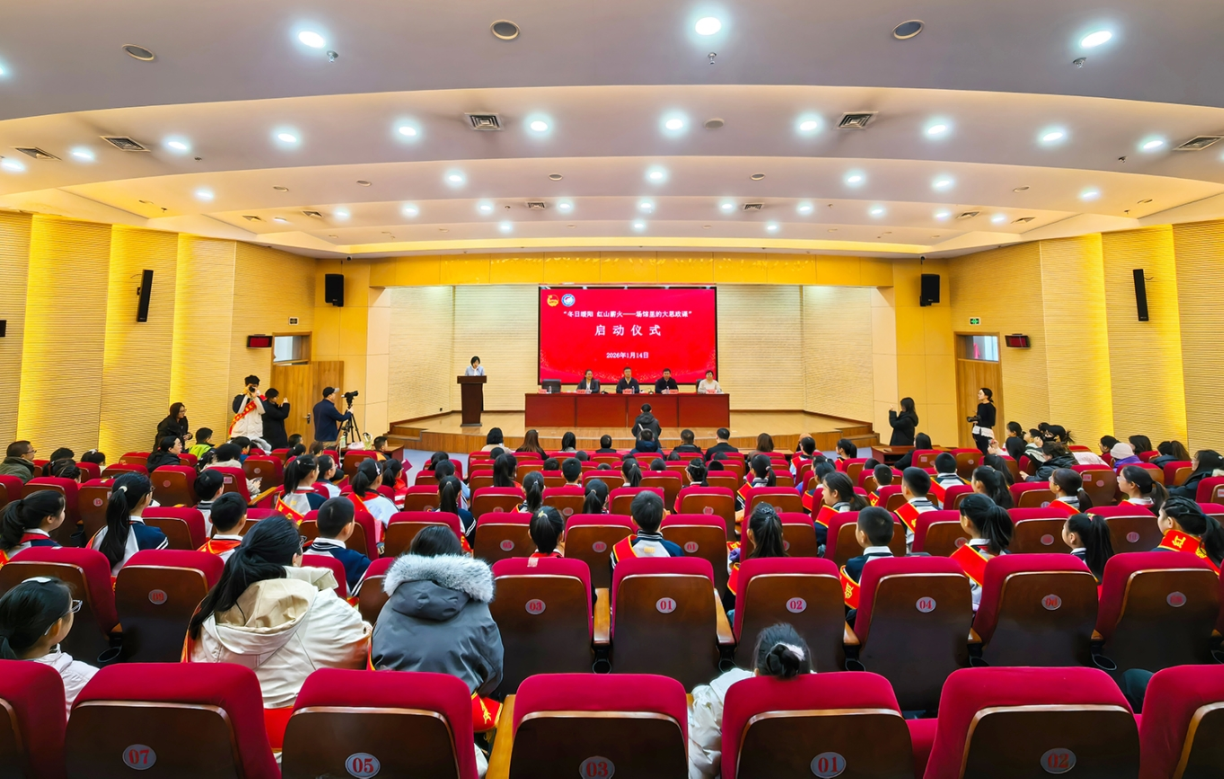 1月14日上午,“冬日暖阳·红山薪火——场馆里的大思政课”活动启动仪式在我校博物馆二楼学术报告厅举行。团市委书记刘威力、学少部部长张凯,红山区团委书记辛江,松山区团委书记王海天,红山区教育局常务副局长袁野,红山区第十二小学校长杨乐,我校优秀校友、赤峰馨未来高端口才学校校长周广馨等出席仪式。出席仪式的我校党委班子成员有党委副书记李伟威,党委委员、统战部部长齐建萍。我校党委统战部、团委、历史文化学院、美术学院有关负责同志和“青马·石榴籽”学员、“红石榴志愿讲解员”与来自团市委、教育局、相关中小学的领导嘉宾、红领巾志愿者等齐聚一堂,共同见证这场铸牢中华民族共同体意识实践活动启动。我校团委书记王艳丽主持仪式。