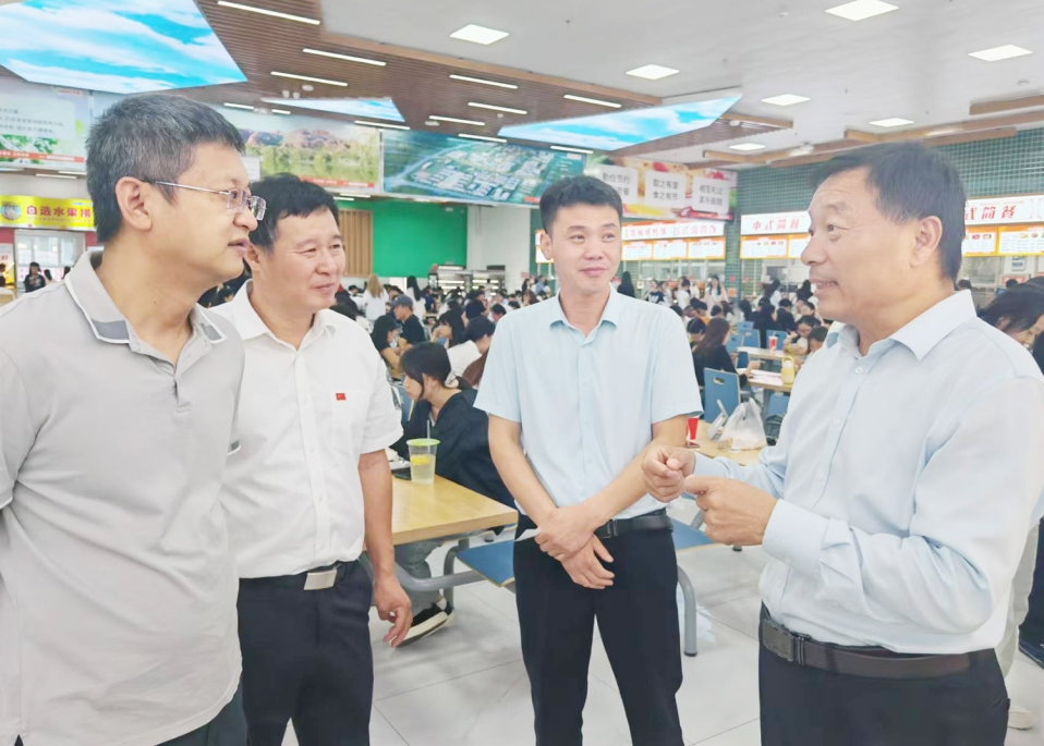 为进一步落实校园食品安全责任制,提升后勤服务质量和科学化水平,9月1日和9月2日,王怀栋校长带领相关职能部门和部分二级学院负责同志深入学校餐厅,对餐厅运营情况进行调研,并与师生共进午餐、座谈交流。