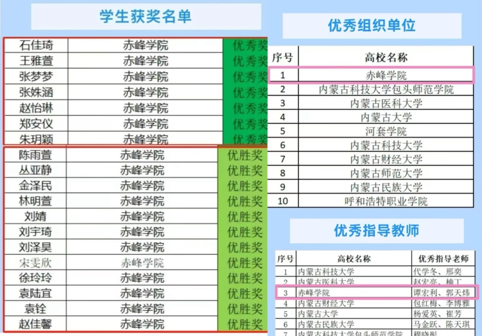 您所在当前位置: 首页 > 新闻动态 新闻动态 我校在全区高校专利信息检索大赛决赛中喜获佳绩 时间:2025-04-27 来源: 作者: 在第25个世界知识产权日到来之际,内蒙古自治区市场监督管理局(知识产权局)举办全区高校专利信息检索大赛,来自全区26所高校3000余名同学参加比赛。我校千余名本科生、研究生报名参赛。经过激烈角逐,进入决赛的56名同学中,7名同学荣获优秀奖、12名同学荣获优胜奖,我校荣获“优秀组织单位”,图书馆谭宏利、郭天炜2位老师荣获“优秀指导教师”称号。