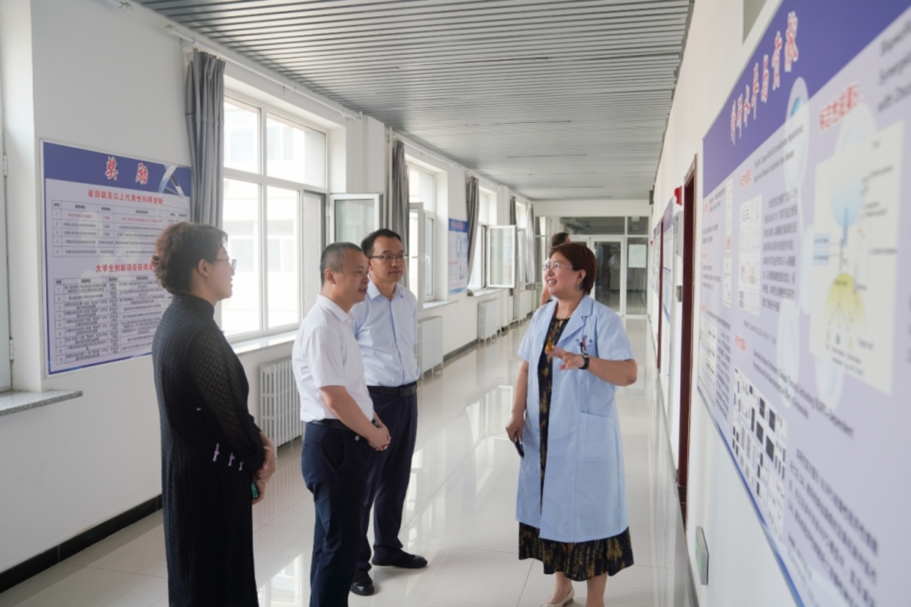 之后,郝喜红副厅长一行又参观了内蒙古人类遗传病研究高校重点实验室,实验室负责人白春英教授全面介绍了实验室的建设历程、研究方向、团队构成及科研成果等情况,郝喜红副厅长不时与科研人员交流,深入了解实验室的科研工作细节。