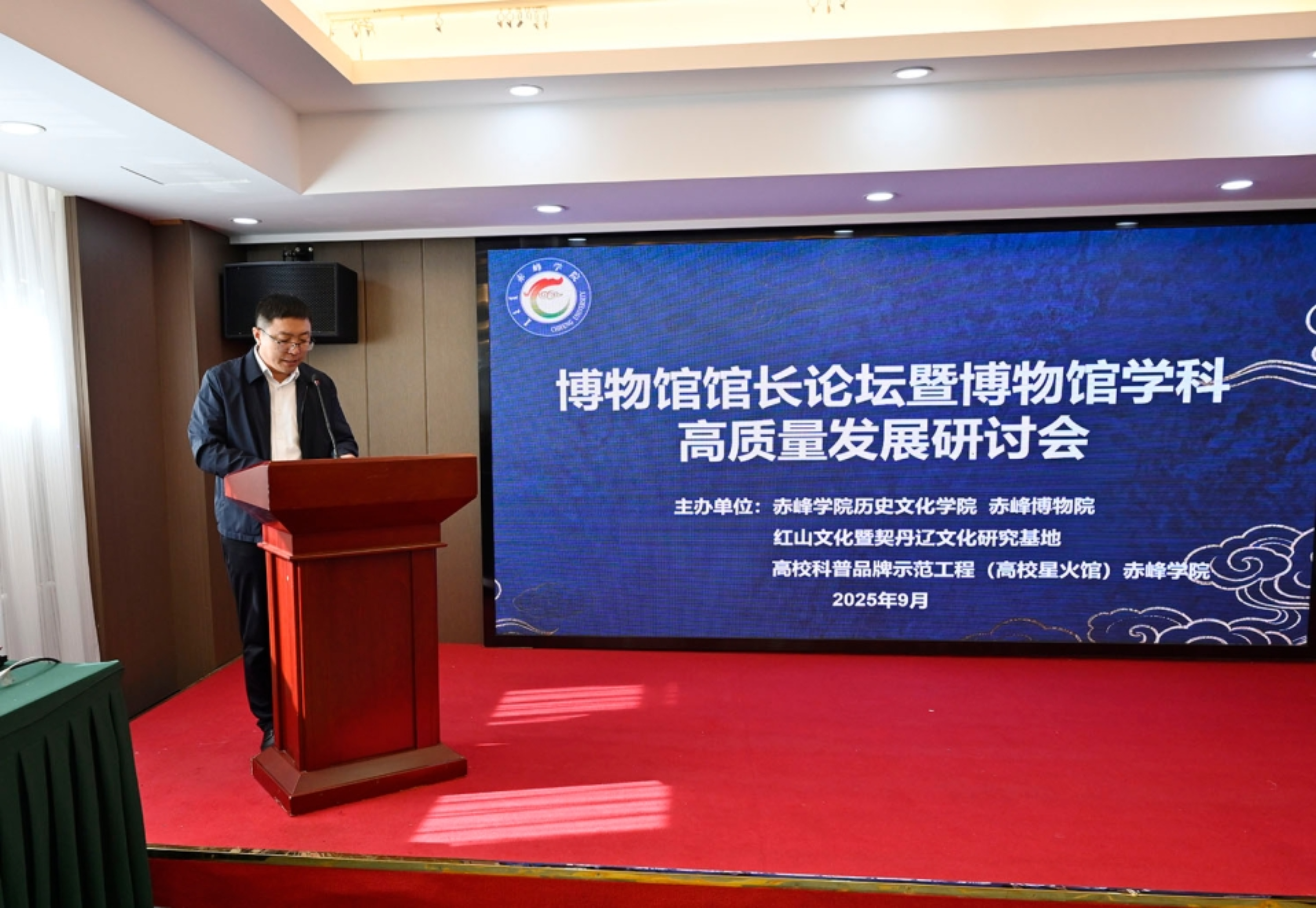 9月16日,由历史文化学院和赤峰市博物馆联合主办的博物馆馆长论坛暨博物馆学科高质量发展研讨会顺利召开。我校党委委员、副校长孙永刚出席会议并致辞。来自浙江省博物馆、杭州市临平博物馆、朝阳北塔博物馆、凌源博物馆、赤峰市及各旗县博物馆的专家以及我校博物馆专业师生参加会议。
