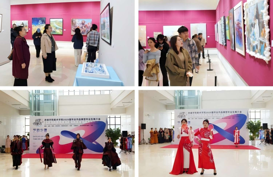 其间,美术学院还以展览为平台,向社会和企业推介毕业生,内蒙古巅峰数字科技有限公司、上海红星美凯龙品牌管理有限公司赤峰分公司和杰初装饰等30余家企业应邀参加推介会,旨在促进人才供需对接,助力毕业生就业。接下来,学校将持续深化教学改革,构建现代教学模式,培养更多应用型、复合型艺术人才,为北疆文化建设和地方经济发展贡献力量。