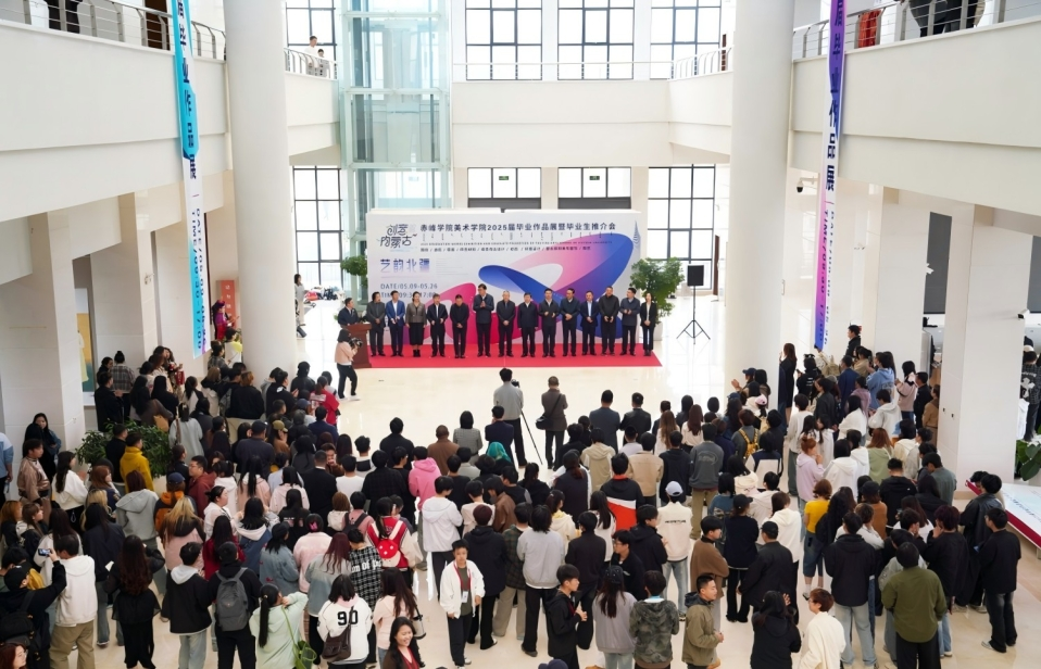 5月9日上午,“艺韵北疆”美术学院2025届毕业作品展暨毕业生推介会在红山美术馆开幕。赤峰市人大常委会副主任张恒、市政协副主席王立恩、市文化和旅游局副局长吴立新、市文联副主席雷亚锋、市书法家协会主席杨少辉出席开幕式。出席开幕式的学校领导有党委书记孟和巴特尔,党委副书记李伟威,副校长徐振军、杨占君、孙永刚,党委委员、统战部部长齐建萍。赤峰市文化艺术界人士、用人单位代表、我校相关职能部门、部分二级学院主要负责人和美术学院班子、全体教师、学生代表参加开幕式。开幕式由孙永刚副校长主持。