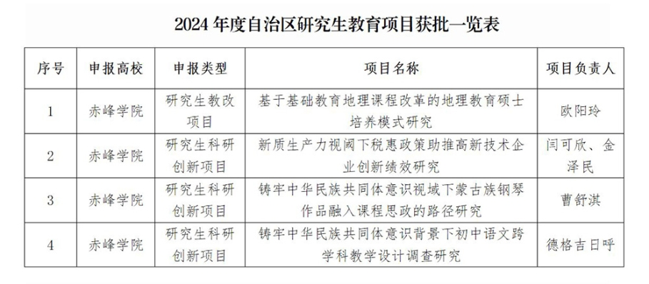 近日,我校在自治区优秀硕士论文评选、研究生教育教学改革、科研创新项目等多个领域均取得了新成绩。其中,两名研究生撰写的论文在2023年度内蒙古自治区优秀博士、硕士学位论文评选中脱颖而出,被评为自治区优秀硕士学位论文,实现了该奖项年度数量上的新突破,体现了学校研究生教育质量的稳步提升;此外,我校还获批1项自治区研究生教育教学改革项目、3项自治区研究生科研创新项目。