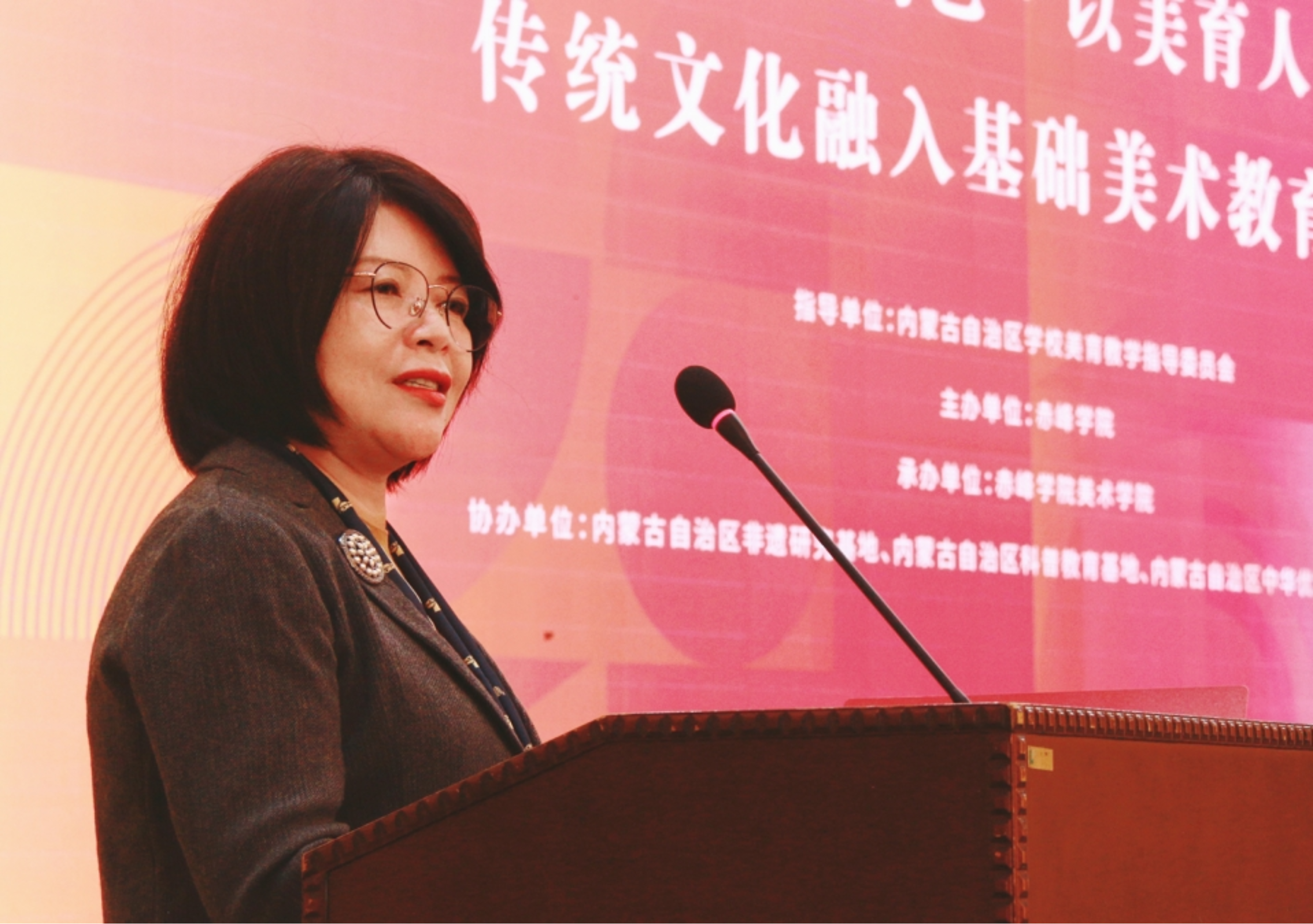 内蒙古学校美育指导委员会副主任委员兼秘书长张卉对我校美育工作成果予以充分肯定,希望通过本次论坛,积极交流经验、激发思想碰撞,共同为推动传统文化融入基础美术教育的实践探索贡献智慧与力量。