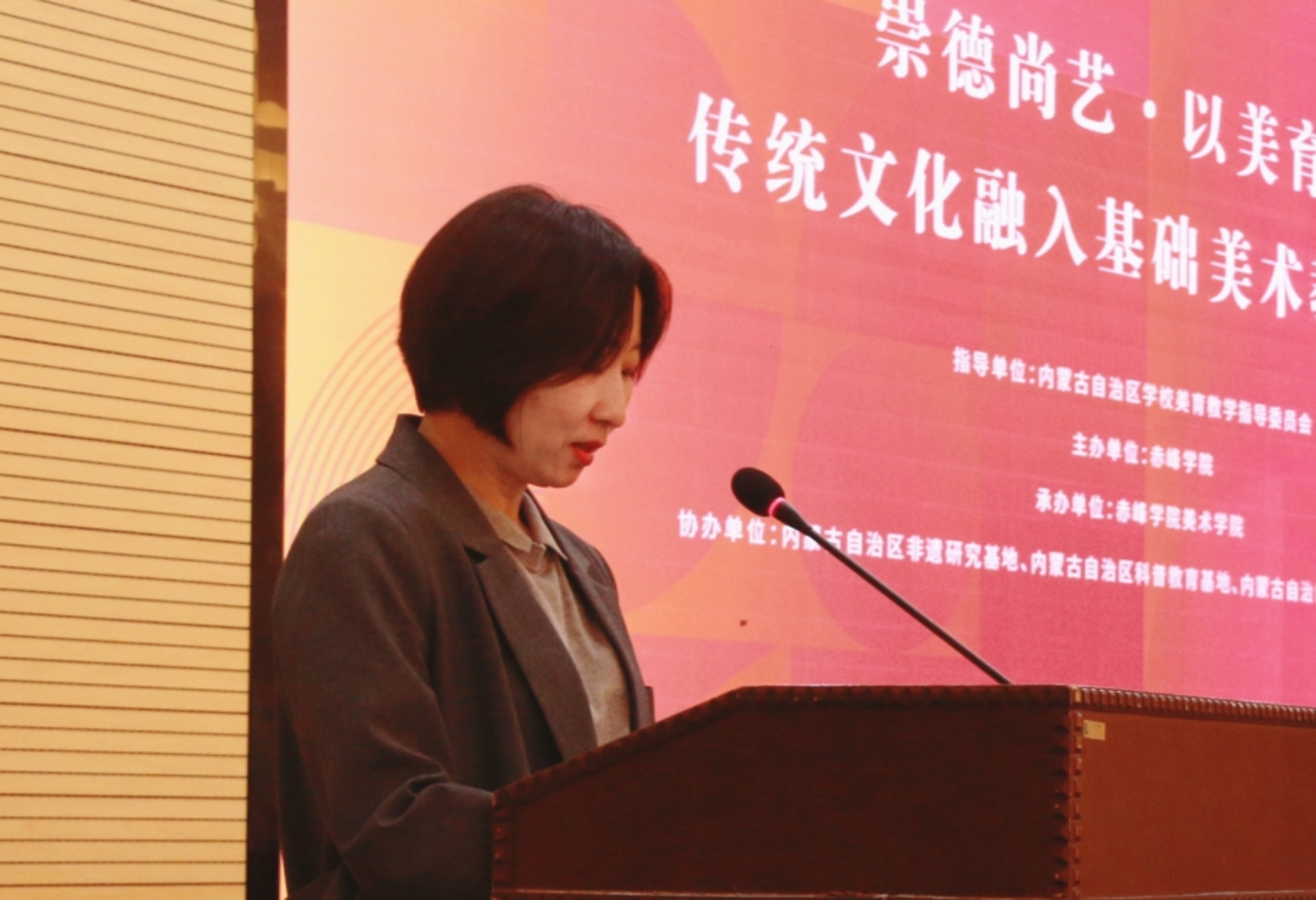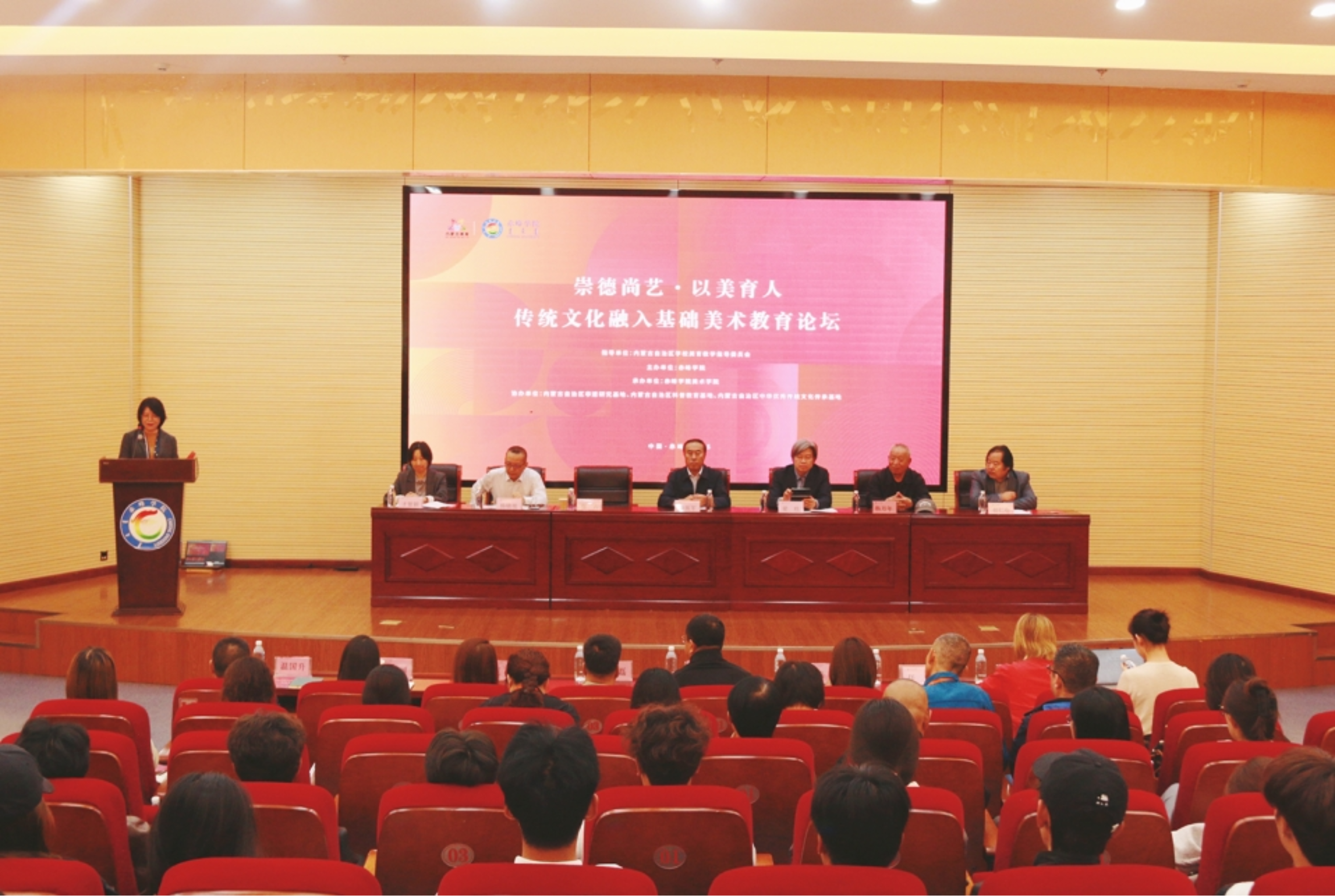 9月20日,由内蒙古自治区学校美育教学指导委员会指导、赤峰学院主办、赤峰学院美术学院承办的“优秀传统文化进校园——基础美术教育”论坛在博物馆二楼学术报告厅成功举办。校党委委员、副校长徐振军出席论坛开幕式并致辞。来自内蒙古自治区的非遗传承人、高校学者、中小学校长、中小学一线教师代表共200余人参加论坛。