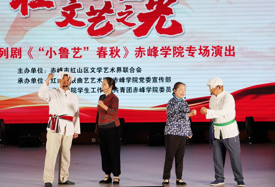 6月4日下午,由赤峰市红山区文学艺术界联合会主办,红山文联曲艺艺术团和我校党委宣传部、学生工作处、团委共同承办的“壮美北疆 文艺之光——曲艺系列剧《“小鲁艺”春秋》”赤峰学院专场演出在大剧场举办。红山区文联、曲艺团负责人,我校相关单位负责同志和500余师生代表共同观看了演出。