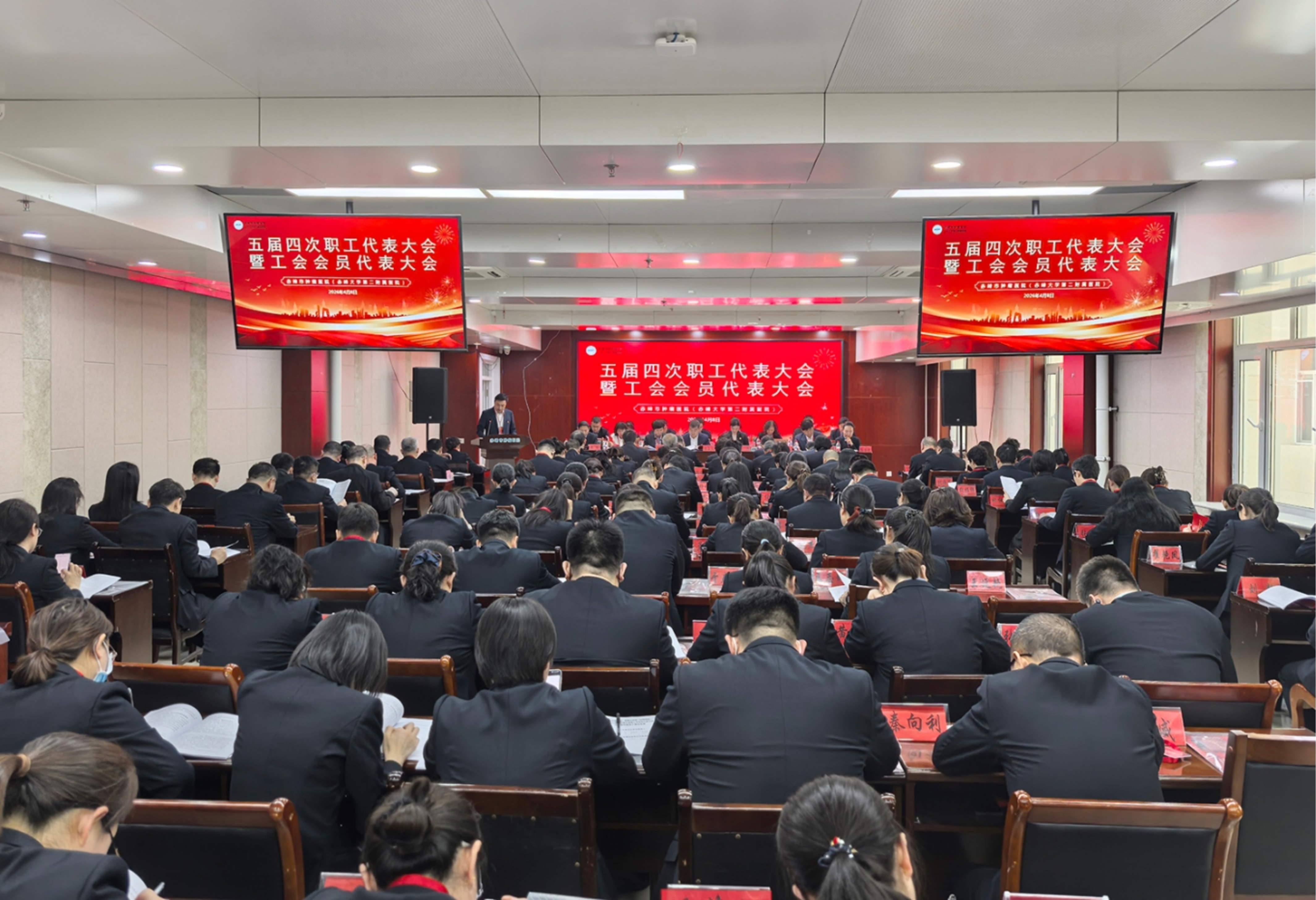 最后,大会在雄壮的《国际歌》声中圆满完成各项议程,胜利闭幕。此次大会是一次统一思想、凝聚共识、鼓舞斗志、催人奋进的大会,既是对医院过去一年工作的全面总结,更是对未来五年发展的全面部署。第二附属医院全体干部职工将以此次“双代会”为契机,锚定“十五五”发展目标,深耕肿瘤专科主业,强化内涵建设,提升服务能力,以更加坚定的信念、更加昂扬的斗志、更加务实的作风,奋力书写肿瘤专科高质量发展崭新答卷,为守护区域群众生命健康、推进健康赤峰建设作出新的更大贡献!