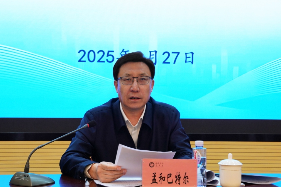 孟和巴特尔书记在讲话中指出党的中心工作推进到哪里,统一战线就要跟进到哪里,智慧和力量就要汇聚到哪里。并就提升统一战线工作和铸牢中华民族共同体意识工作质效提出了三点要求。一是加强党的领导,牢牢把握民族工作正确方向。要不断加强党对民族工作的全面领导,牢牢把握正确政治方向,切实将铸牢中华民族共同体意识贯穿办学治校、教育教学各领域全过程。二是强化思想引领,筑牢民族团结进步的思想基础。要持续加强铸牢中华民族共同体意识教育,培养新时代民族团结进步的践行者、促进者和守护者。三是强化研究阐释,构筑各族师生共有精神家园。要立足区域优势和实践平台,形成一批具有一定理论深度、可转化利用、能有效指导具体实践的研究成果,为铸牢中华民族共同体意识提供更为坚实的学理支撑和宣传教育平台。