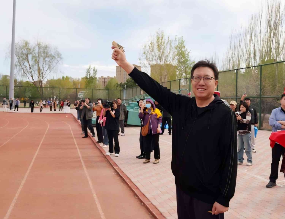 党委书记孟和巴特尔鸣响发令枪,比赛正式拉开帷幕。
