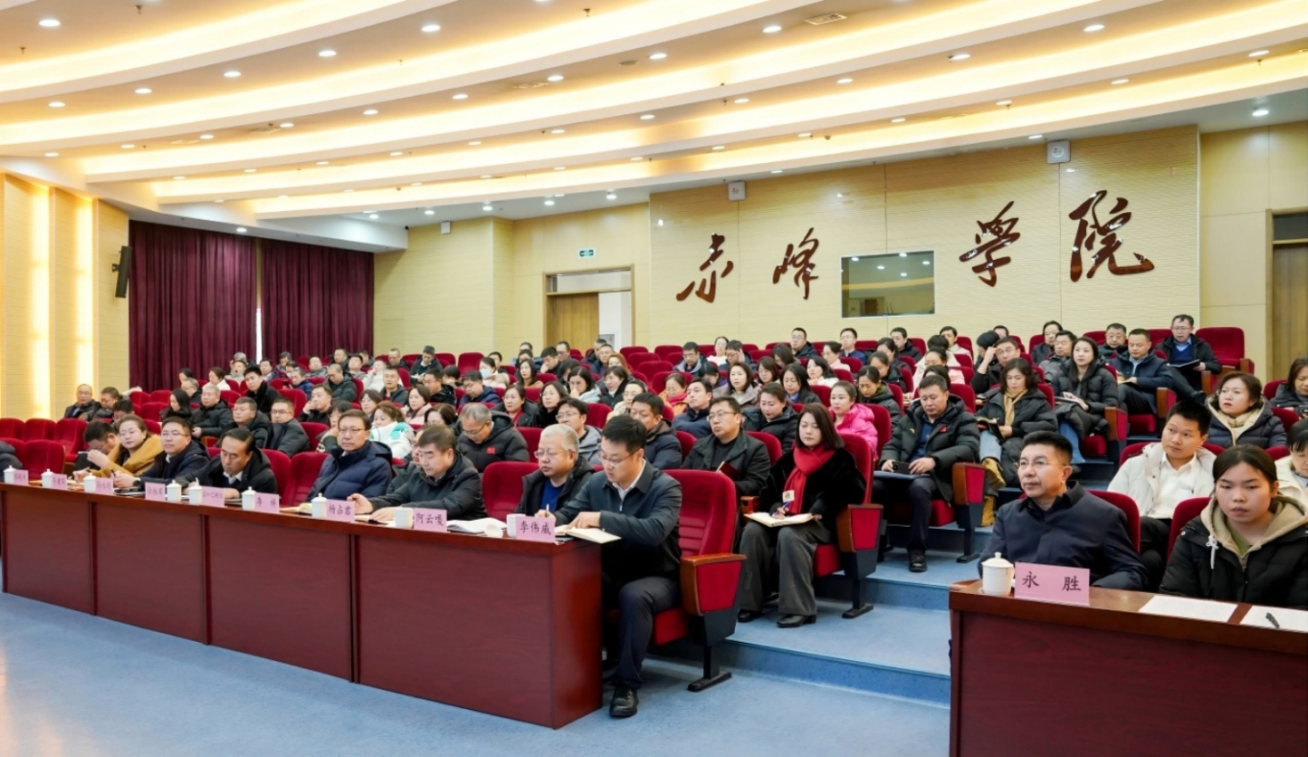 为深入学习贯彻党的二十届四中全会精神,精准对接赤峰市“十五五”发展规划,进一步统一思想、凝聚共识、推动工作,3月5日下午,学校党委在博物馆学术报告厅举行2026年春季学期“开学第一课”专题培训会。学校领导班子全体成员、副处级及以上领导干部参加本次培训。校党委副书记李伟威主持本次培训会。
