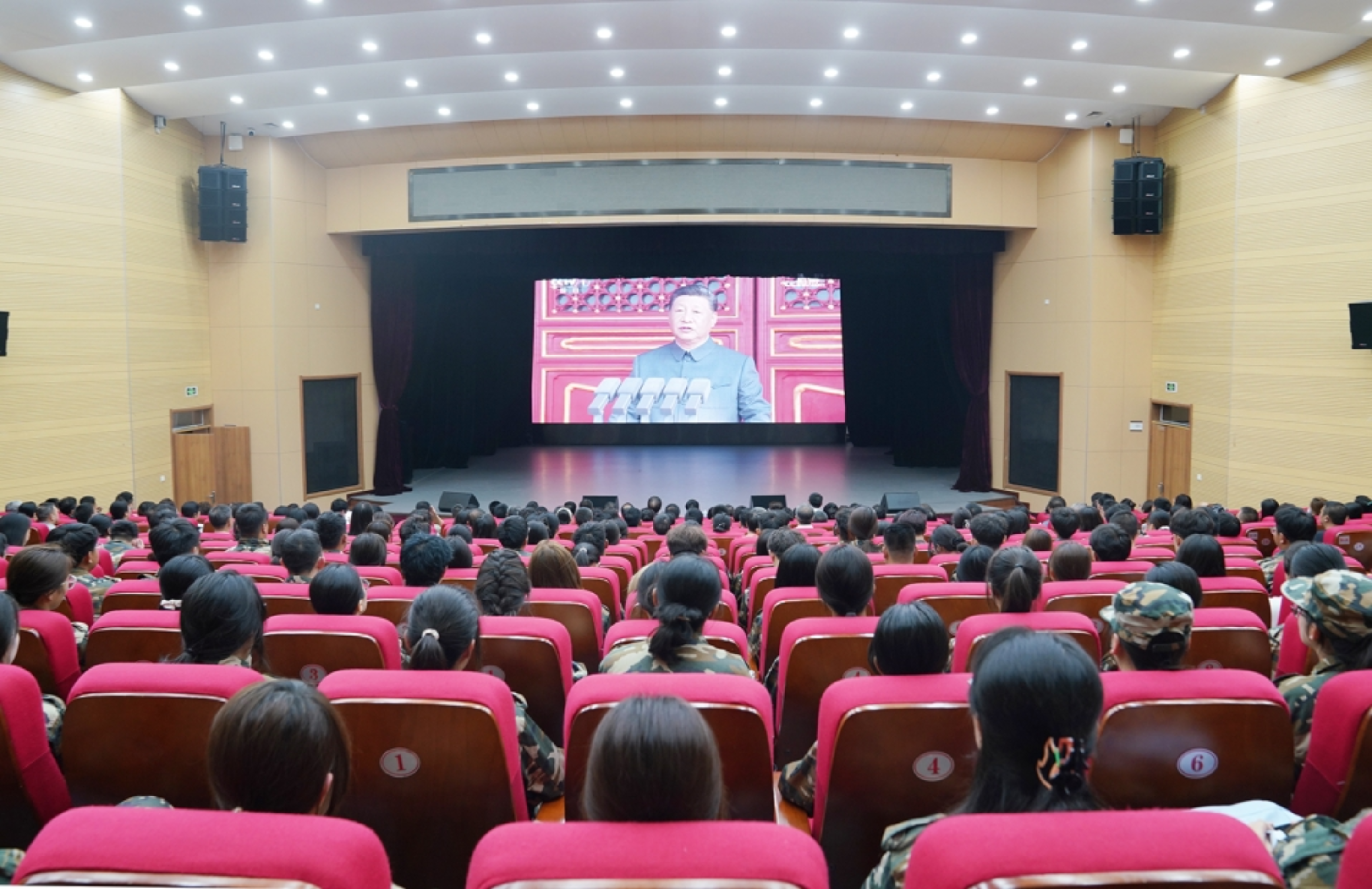 9月3日上午,纪念中国人民抗日战争暨世界反法西斯战争胜利80周年大会在北京天安门广场隆重举行。为第一时间了解大会盛况,直观感受盛大阅兵式、分列式的震撼场面,赤峰学院组织干部师生进行了集中收看。学校党委班子、机关党委全体党员和400余名2025级新生代表在大剧场集中观看了大会实况直播。同时,各二级单位党委(党总支)也结合本单位实际,采取灵活有效措施组织本单位师生进行了集中观看。