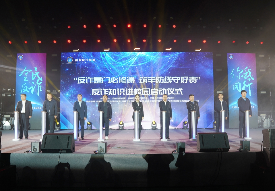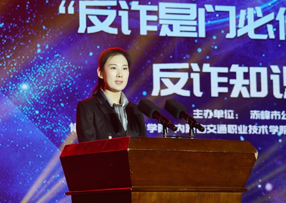 比赛前,赤峰市公安局反诈中心工作人员通过现场答题、随机采访等形式与现场学生交流了电信网络诈骗相关知识,增强了学生的辨别能力和防诈意识;反诈宣讲员现场朗诵了《雷霆反诈 守护山河安宁》,表达了筑牢反诈防线、维护社会稳定的坚定立场。