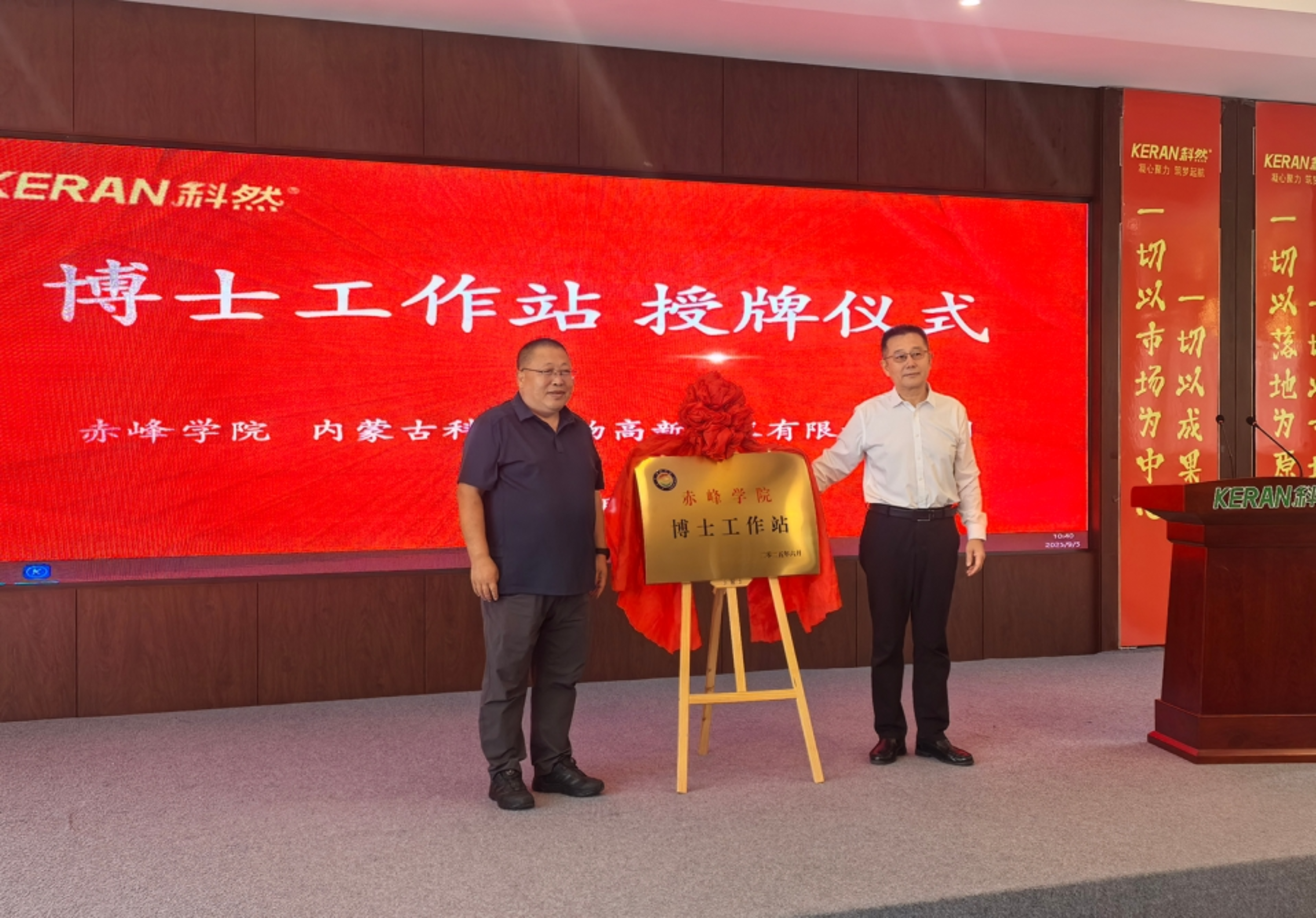 赤峰学院化学与生命科学学院党总支副书记、院长郭成与科然生物董事长何平共同为工作站揭牌,标志着赤峰学院与科然生物在产学研合作领域迈入更高层次,开启了校企协同创新、共促地方产业高质量发展的新篇章。