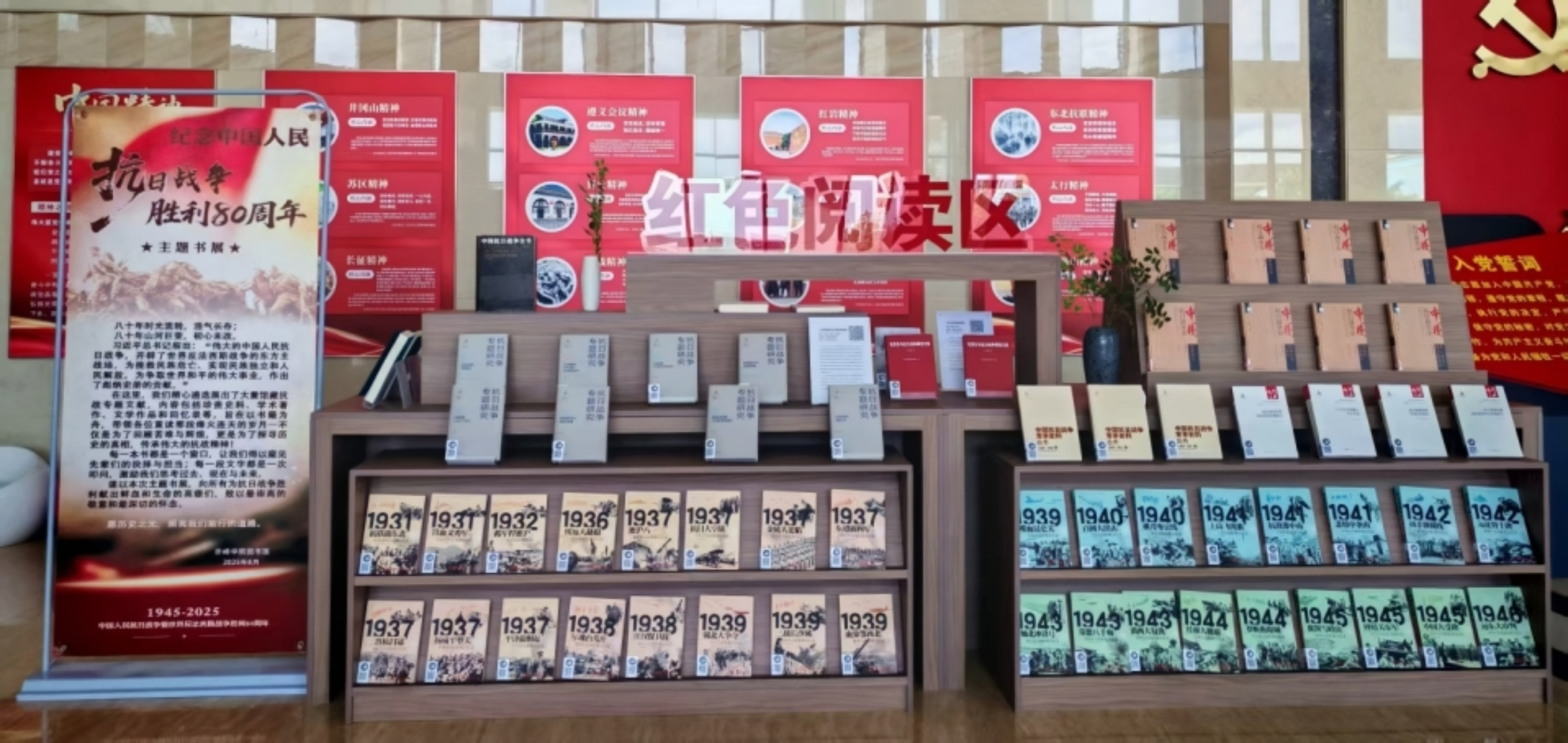 铭记历史,吾辈自强——纪念抗战胜利80周年图书展:位于二楼南门厅,精选史料与研究著作,回顾烽火岁月,缅怀先烈,激励师生自强。