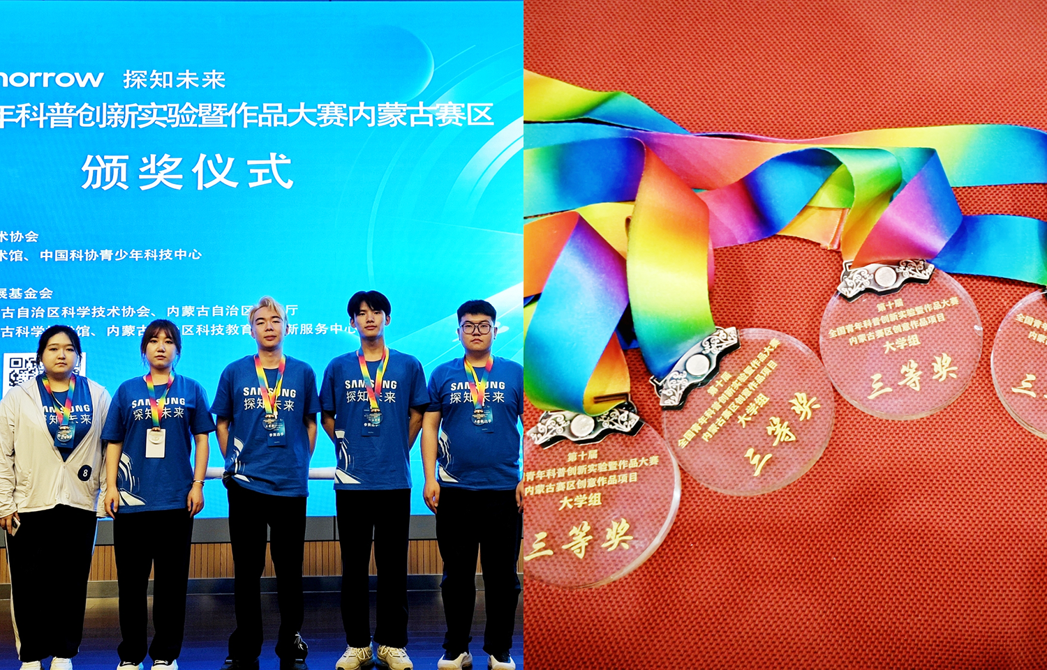 5月25日至5月26日,由内蒙古自治区科学技术协会、内蒙古自治区教育厅主办,内蒙古科学技术馆、内蒙古自治区科技教育和创新服务中心承办的第十届全国青年科普创新实验暨作品大赛内蒙古赛区复赛在呼和浩特市成功举办。我校教师教育学院、数学与计算机科学学院戈兆娇、李禹霏两位老师指导,贾斌、胡丽峡、乔珩、张誉馨、刘浩5位同学组成的“‘心智’生产力”学科交叉小组参与比赛,凭借作品“云上心擎”喜获三等奖。