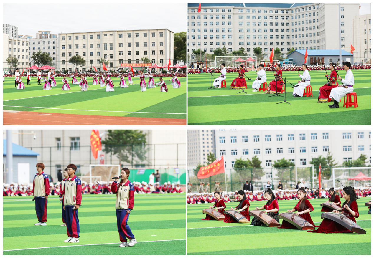 2024级新生开学典礼暨军训总结表彰大会结束后,音乐学院师生表演了舞蹈《骏马奔腾》、歌曲联唱《篇章》、二胡齐奏《赛马》、古筝合奏《盛世国乐》等十余个精彩的文艺节目,用歌声、舞蹈向承训部队官兵致敬,向全体师生送上美好祝福。