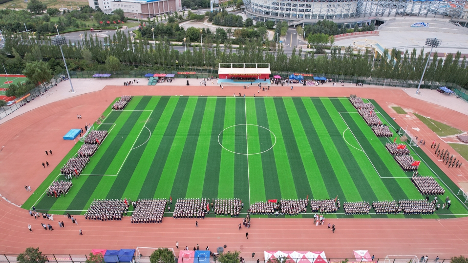 9月13日上午,我校在田径运动场召开2024级新生开学典礼暨军训总结表彰大会,3256名新生以飒飒军姿展示军训成果,彰显着青春力量。在家的校党委班子成员、承训部队参谋陈泰运出席大会并在主席台就座。学校相关职能部门负责人,各二级学院党政负责同志、团学办负责人、新生辅导员和2024级全体新生参加大会。校党委书记孟和巴特尔主持大会。
