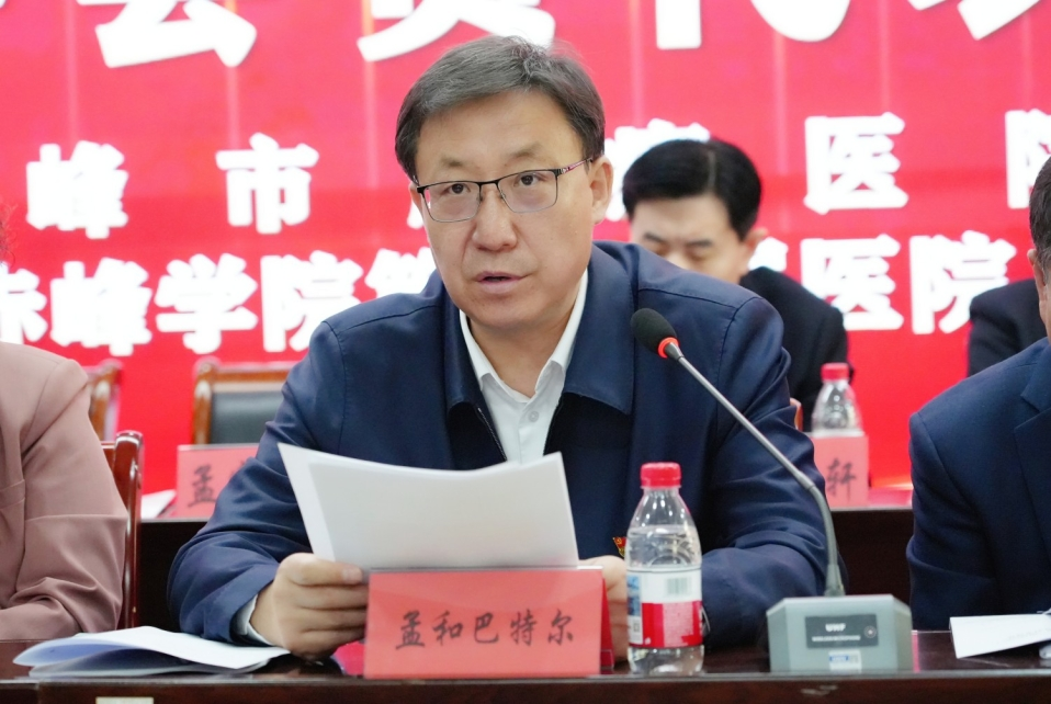 孟和巴特尔书记在讲话中代表学校党委对大会的召开表示祝贺,对医院全体职工的辛勤付出表示肯定,并从坚持党的领导、深耕内涵建设、深化综合改革、扩大对外交流四个方面对医院工作提出希望和要求,强调要以党建为引领,推动医院高质量发展,为人民群众提供更加优质、高效的医疗服务。