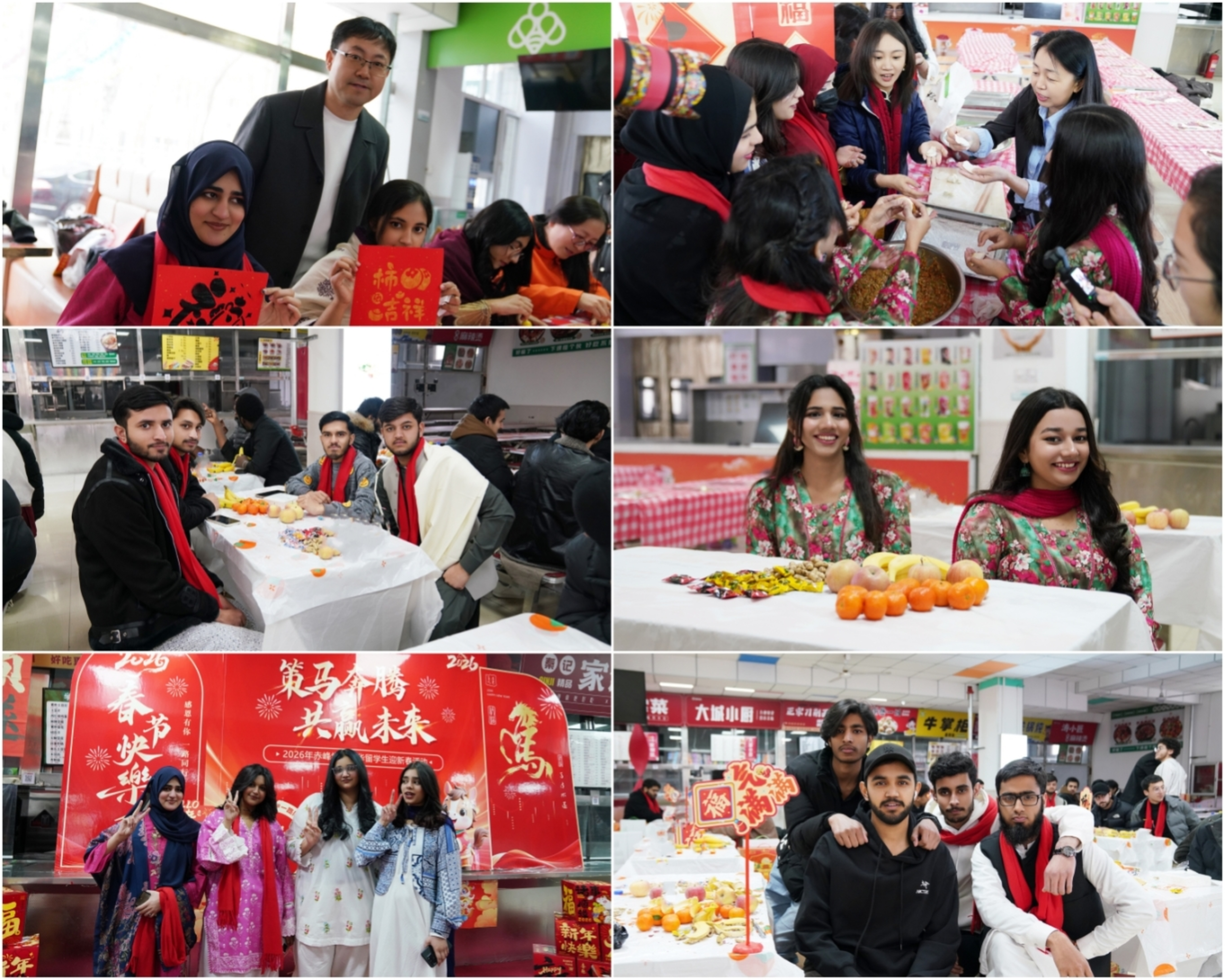 活动现场氛围热烈,来自印度尼西亚的NOVI同学以一首中文歌曲传递新年喜悦,来自卢旺达的KHALILULLAH与加纳的MUSTAPHA同学通过原创诗歌表达对新春的祝福,巴基斯坦UMAR KHAN同学的新年祝福诗歌则让现场充满温情。在非遗体验环节,林老师带领师生共同体验红山岩画拓印活动。来自巴基斯坦的BILAL同学跟记者兴奋地介绍起他自己亲手制作的拓印作品,表示对中国文化非常感兴趣,想在今后的生活中多参与到这样的活动中来,多了解中国文化。随后,留学生和老师们共同书写“福”字、制作灯笼、剪制窗花、包制饺子,通过亲手实践感受春节习俗中蕴含的文化内涵。留学生们在沉浸式体验中不仅掌握了传统技艺,更深刻理解了春节“团圆”“纳福”“迎新”的文化意义。