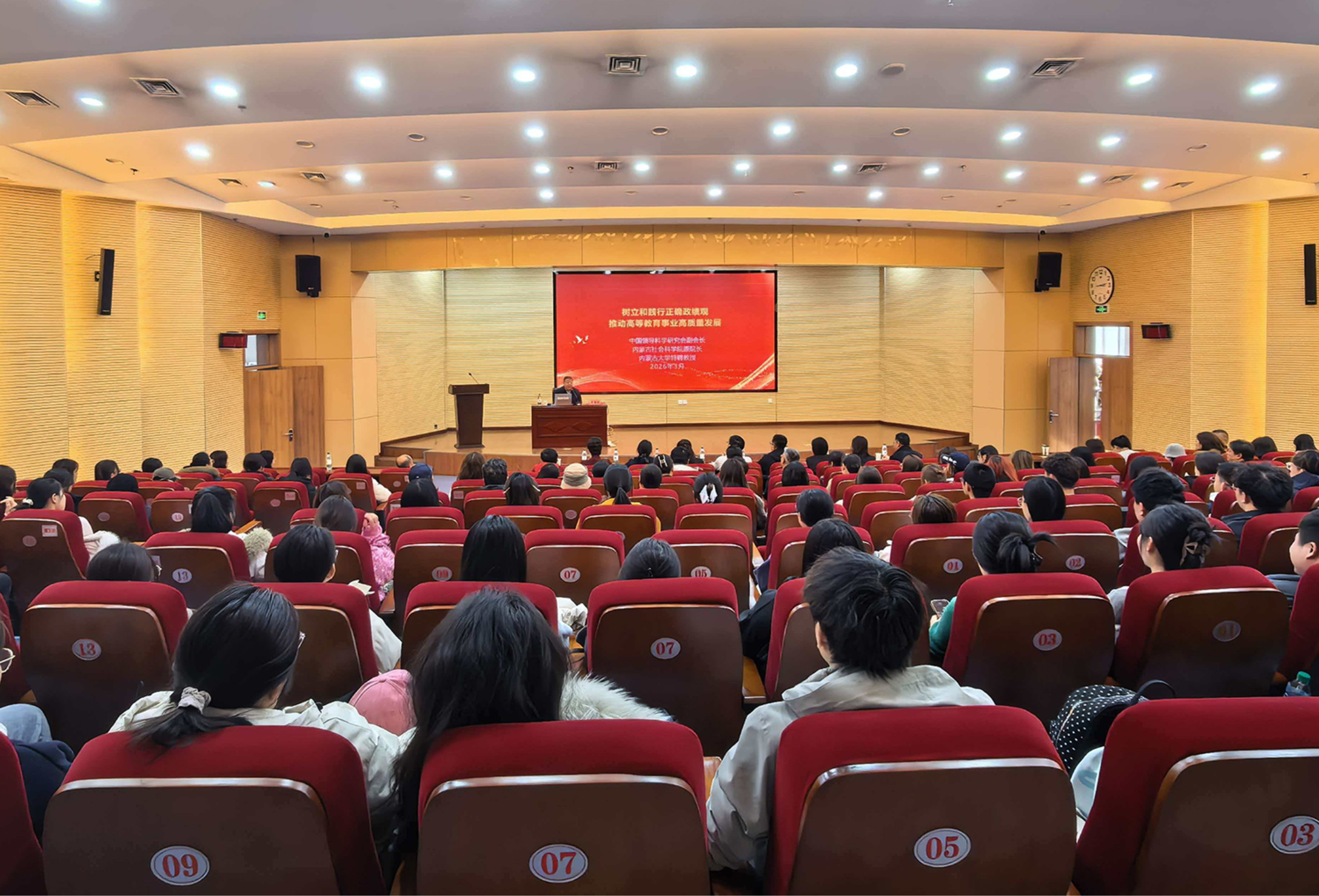讲座中,李春林教授以《树立和践行正确政绩观,推动高等教育事业高质量发展》为题,以赤峰大学建设发展为切入点,从习近平总书记关于正确政绩观的重要论述入手,系统阐释了政绩、政绩观及正确政绩观的核心内涵,深入解读了“立党为公、为民造福、科学决策、真抓实干”十六字总要求,并结合高等教育转型发展的时代背景,分析了当前高校发展面临的机遇与挑战,提出了以正确政绩观推动高等教育高质量发展的实践路径。讲座内容既有理论高度,又紧密结合学校实际,为学校“十五五”时期发展提供了理论指导。