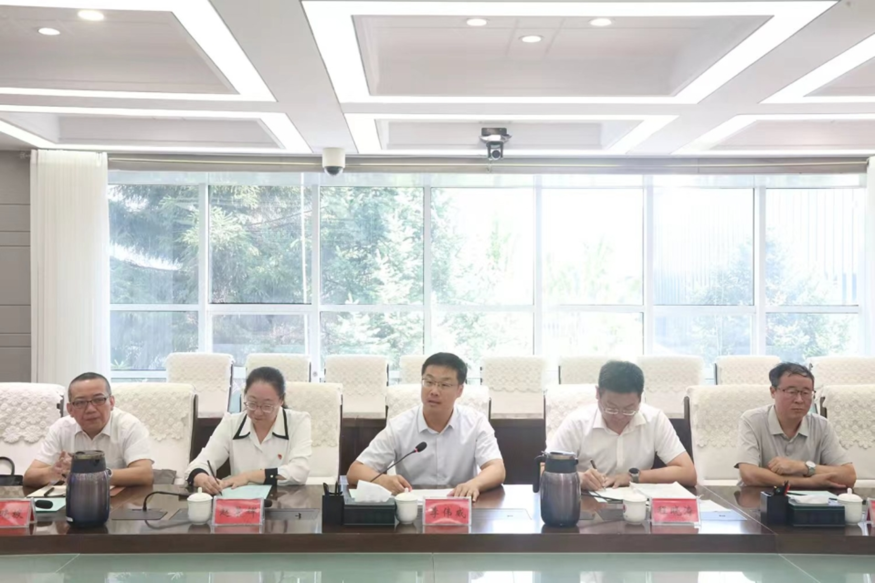 李伟威副书记介绍了赤峰学院发展现状,并强调,一是要共建法治人才实践基地,共促地方高质量发展。此次挂职是大学与检察机关深度合作,实现理论与实践优势互补、推动法治人才培养与法治建设共赢的重要举措。它既是学院发挥学科优势服务地方的实践,也是教师将理论对接实战、提升“双师”能力的重要平台。二是对我校挂职干部提出明确要求。要转变角色,主动融入。尽快适应新环境、新岗位,虚心向检察同仁学习,熟悉业务流程,恪守工作纪律,展现高校教师的良好风貌;要发挥专长,贡献力量。立足自身专业背景,积极投身检察实务,参与案件分析、法律研究和疑难论证,力求学以致用,为检察工作提供智力支持,当好推动理论研究与实践深化的实干先锋;要当好桥梁,促进合作。积极传递双方需求,促进信息互通与资源整合,为后续更深层次的校地合作铺路搭桥,做好大学专业教育与检察实践的桥梁纽带;要严守纪律,树好形象。严格遵守各项检察纪律、保密规定和职业道德,廉洁自律,踏实工作,维护好学校和检察机关的良好声誉。