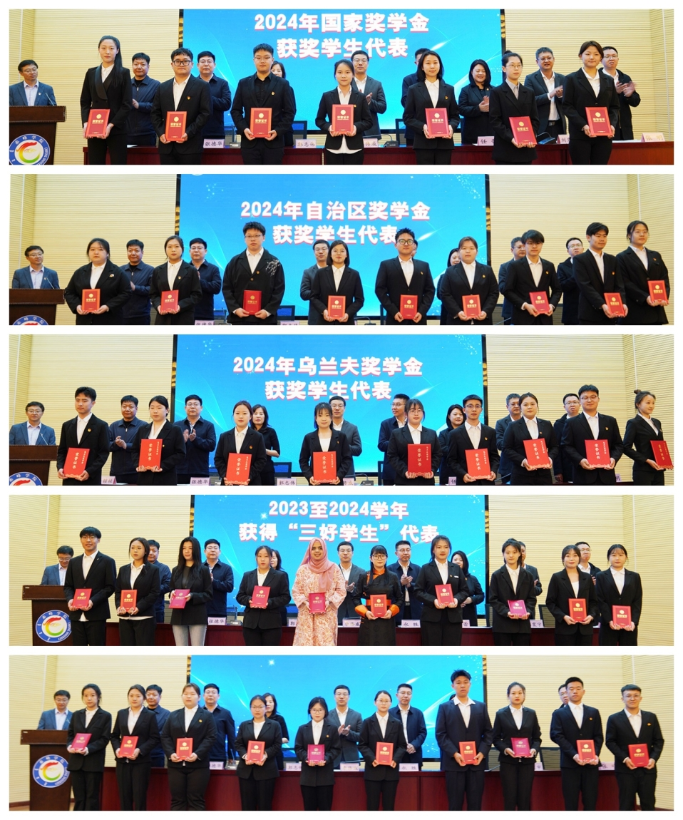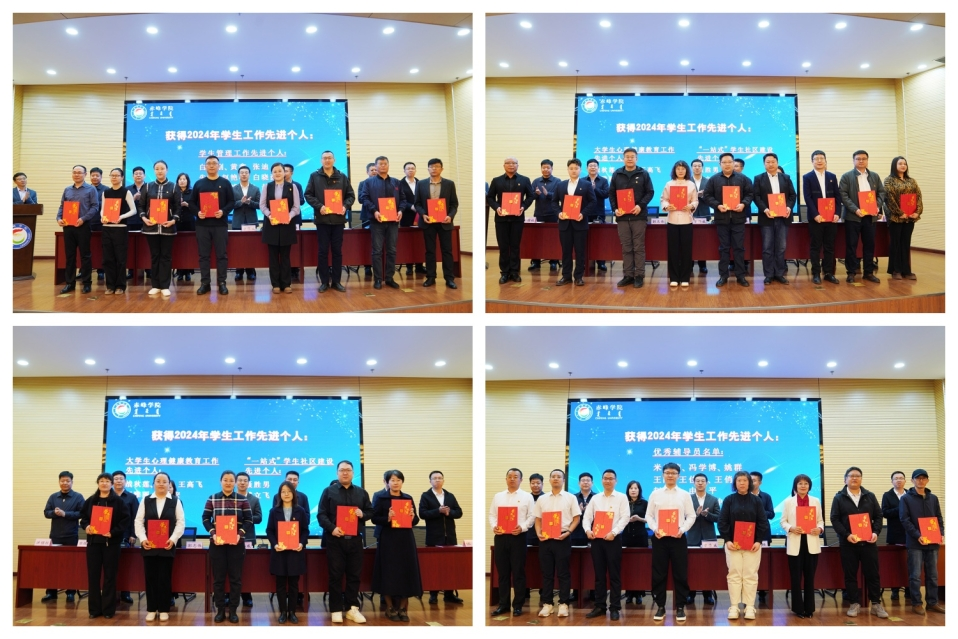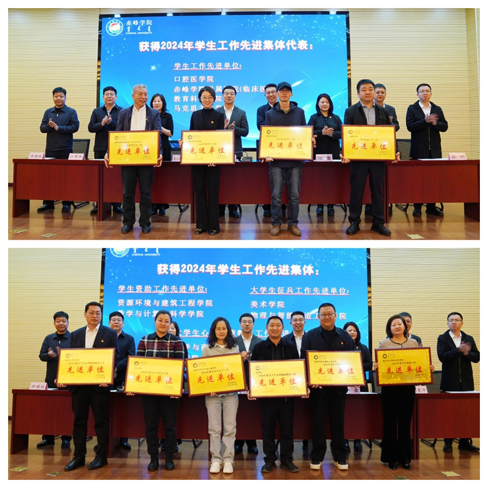 会上,对2023至2024学年度学生先进集体和先进个人,2024年乌兰夫奖学金获得者,2024年国家奖学金、国家励志奖学金、自治区奖学金、自治区励志奖学金获得者,2024年本专科生国家奖学金(第二批)获得者,2024年度赤峰学院学生工作先进集体和先进个人进行了表彰。与会领导为获奖集体和个人代表颁发了奖牌和证书。口腔医学院党总支书记白金刚和经济与管理学院学生周强分别作为获奖教师和学生代表发言。