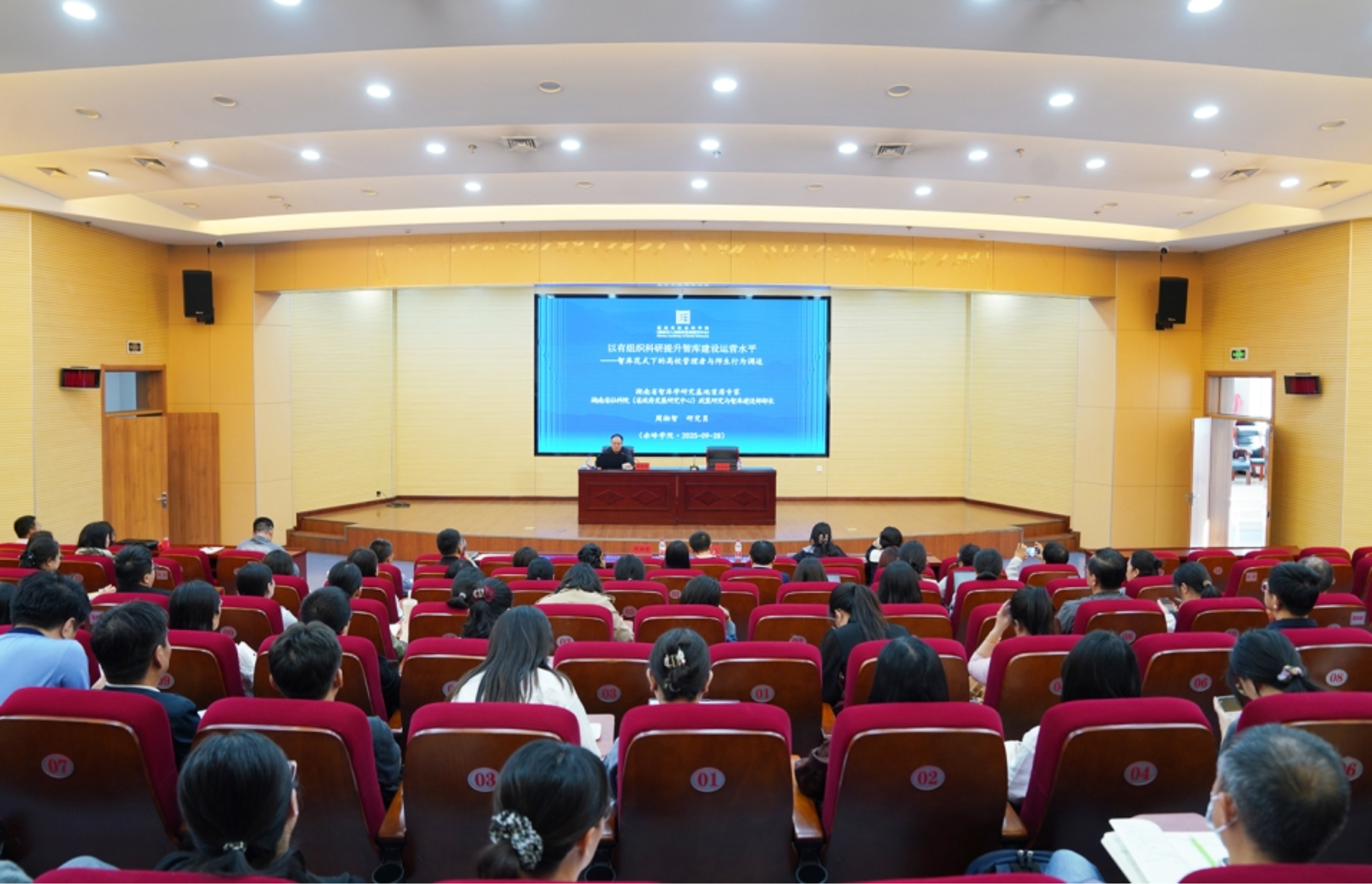 9月28日下午,由科技处主办、经济与管理学院承办的“科技大讲堂”系列活动第一讲开讲。本期讲堂特邀湖南省社会科学院(湖南省人民政府发展研究中心)周湘智研究员担任主讲嘉宾,我校党委委员、副校长孙永刚主持活动,全校部分二级学院教师到场聆听。