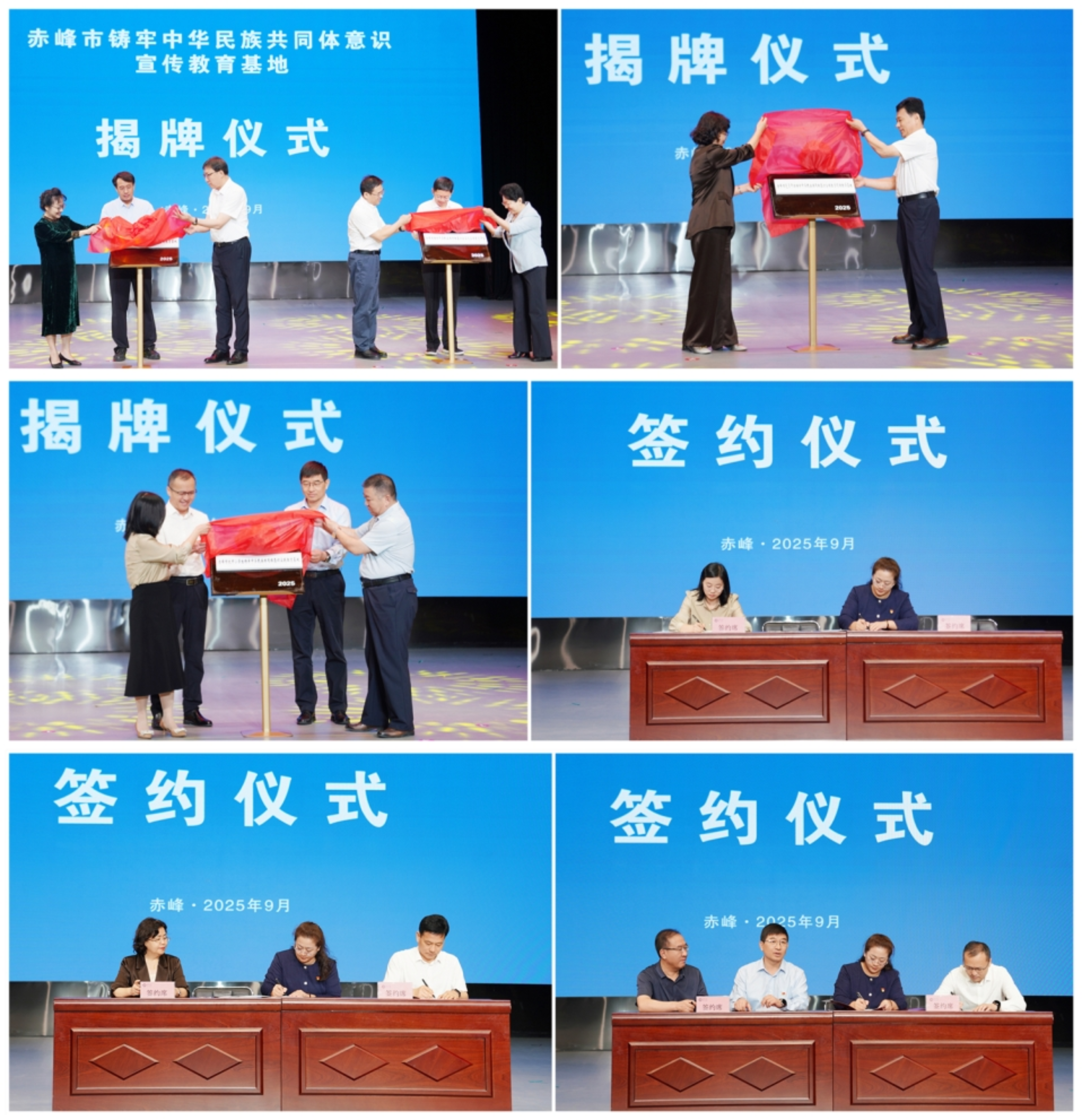 启动仪式上,我校党委书记孟和巴特尔致辞,市政府副市长杨牧讲话,市委常委、统战部部长王生才宣布平台正式启动。随后,出席领导共同为赤峰市铸牢中华民族共同体意识分众化宣传教育平台——赤峰市铸牢中华民族共同体意识宣传教育基地揭牌。我校党委委员、统战部部长齐建萍代表学校与市委党校、敖汉干部学院、驻赤高校及市教育局签署了现场教学合作协议,标志着依托我校建设的赤峰市铸牢中华民族共同体意识宣传教育基地正式投入使用。