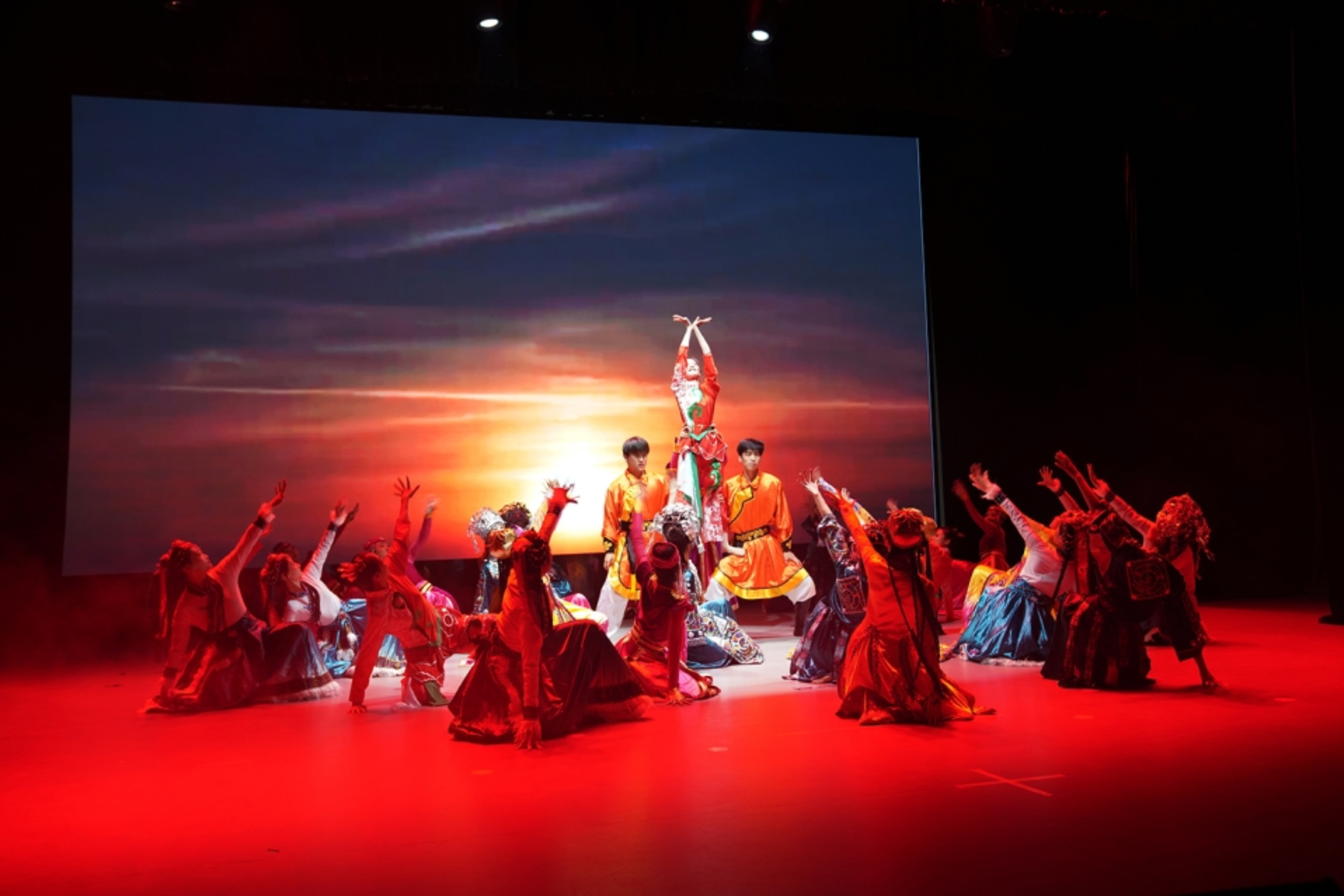 启动仪式后,我校音乐学院、马克思主义学院师生以“融铸北疆·齐心向党”为题,呈现了一堂创新铸牢中华民族共同体意识宣传教育模式的“舞台上的思政课”。师生们以思想政治教育为核心、以舞台艺术为载体,创新采用情景式、沉浸式呈现方式,把党的民族理论政策与中华民族共同体理念“可视化、可感知”诠释,切实增强了宣传教育的感染力和实效性,充分彰显了新时代“大思政课”的育人功能。