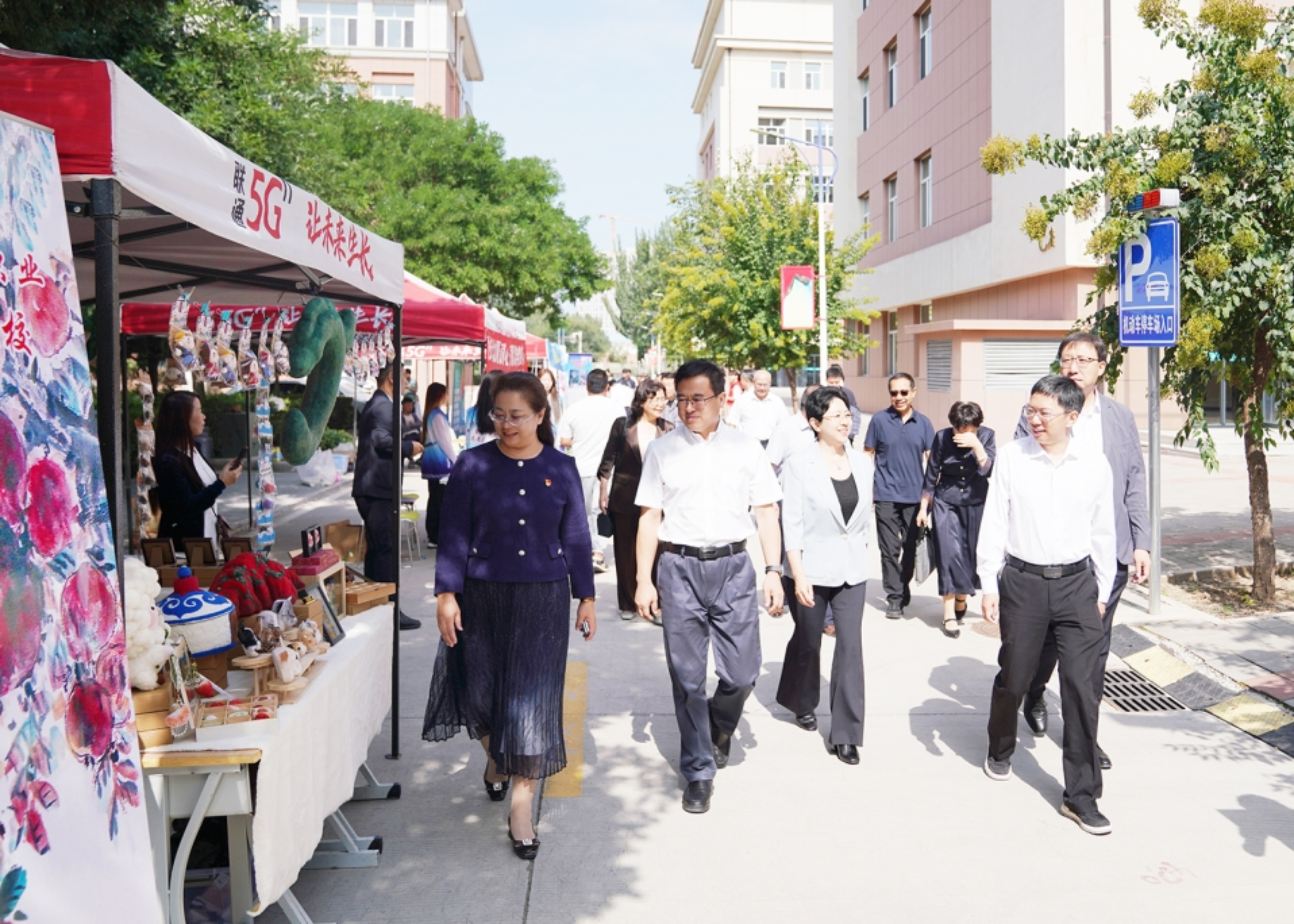 此外,我校还联合市民委在大剧场通往基地的校园林荫路上举办了铸牢中华民族共同体意识成果展和中华优秀传统文化展演,集中展示了铸牢实践研究中心和我校在铸牢中华民族共同体意识工作中的特色做法和阶段性成果,同时展出了各民族传统手工艺品和非遗美食等。师生与观众积极参与剪纸、香包制作等非遗体验项目,在沉浸式互动中感受了民族团结进步的现实成效和中华优秀传统文化的独特魅力。现场还开展了党的民族理论政策知识有奖问答活动,学校“青马·石榴籽”志愿者以“团团”“美美”形象开展了趣味互动,寓教于乐、增强实效,让理论宣传更加鲜活生动。