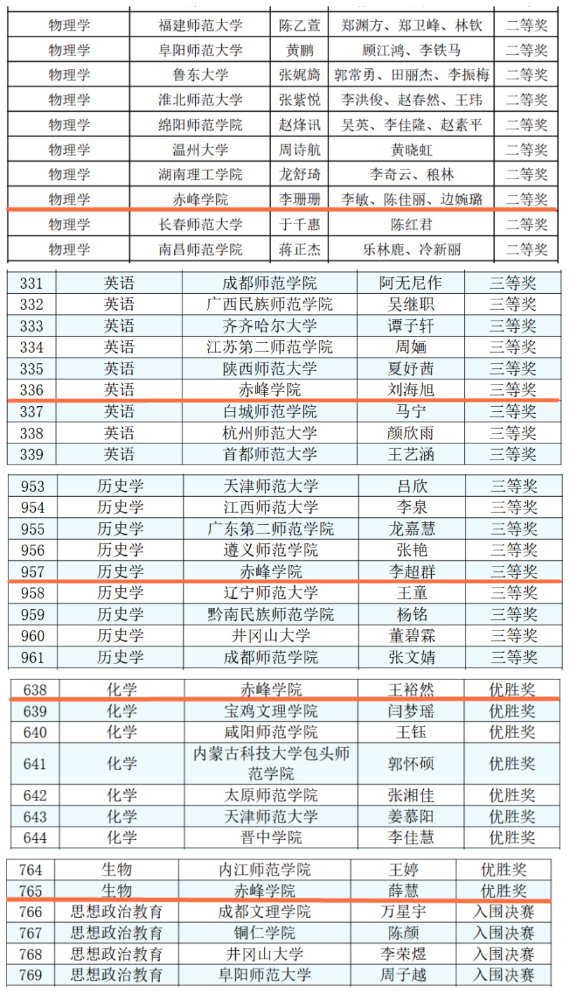 11月30日至12月1日,第十届“田家炳杯”全国师范院校师范生教学技能竞赛决赛在浙江师范大学举行。全国共有250所学校的1831名选手参赛,520名选手进入决赛。我校派出选手参加了全部11个组别的比赛,其中,物理与智能制造工程学院的李珊珊同学荣获二等奖,外国语学院的刘海旭、历史文化学院的李超群两位同学荣获三等奖,化学与生命科学学院的薛慧、王裕然两位同学荣获优胜奖。